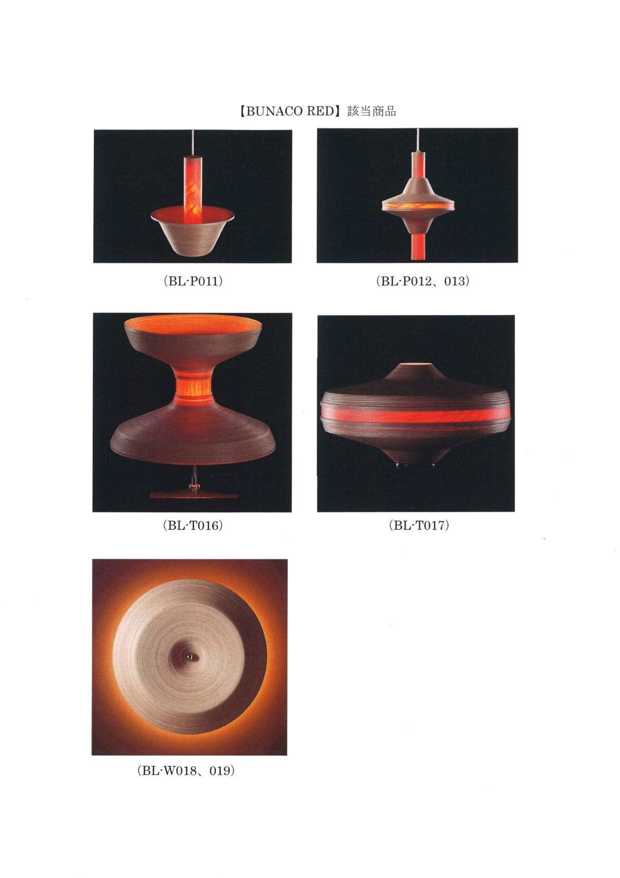 ブナコは工業試験場から技術を譲渡された当時はねぷた絵などを漆器に施していたが、2000年以降にデザイナーとのランプシェードのブランディングデザインによりそのイメージを一変させる。ブナ材は薄く桂剥きにしたものをランプにかざすとその部分はほんのり赤くなる特徴があった。これがBUNACO REDである。このランプシェードを採用したTORAYA CAFEでは各方面で話題となった。その後も同技術を使用したダストボックスやロングセラーのティッシュボックスなどがある(註3・②)。これらの作品には一貫してブレないスタイルが存在する。それは素材の持ち味を壊さず、独自の製法で造られる独特なフォルムである。工場見学で実際に目の当たりにしたが、このフォルムを形作る、巻き上げ・型上げと呼ばれる作業は(註1・2&3)力加減が非常に難しく、熟練の技術が必要である。しかし、この2つの工程でほぼBUNACOが形造られると言っても過言ではない。