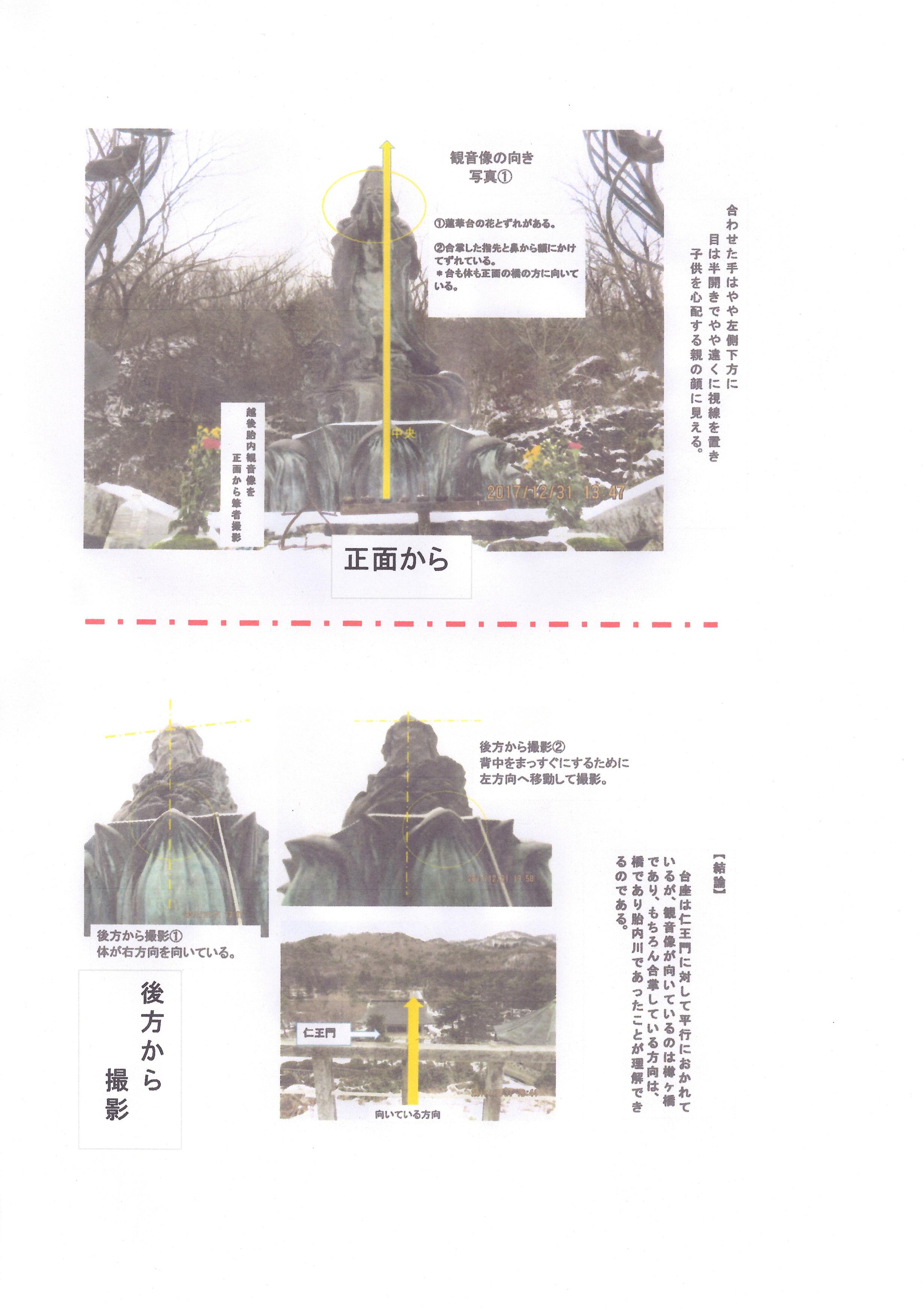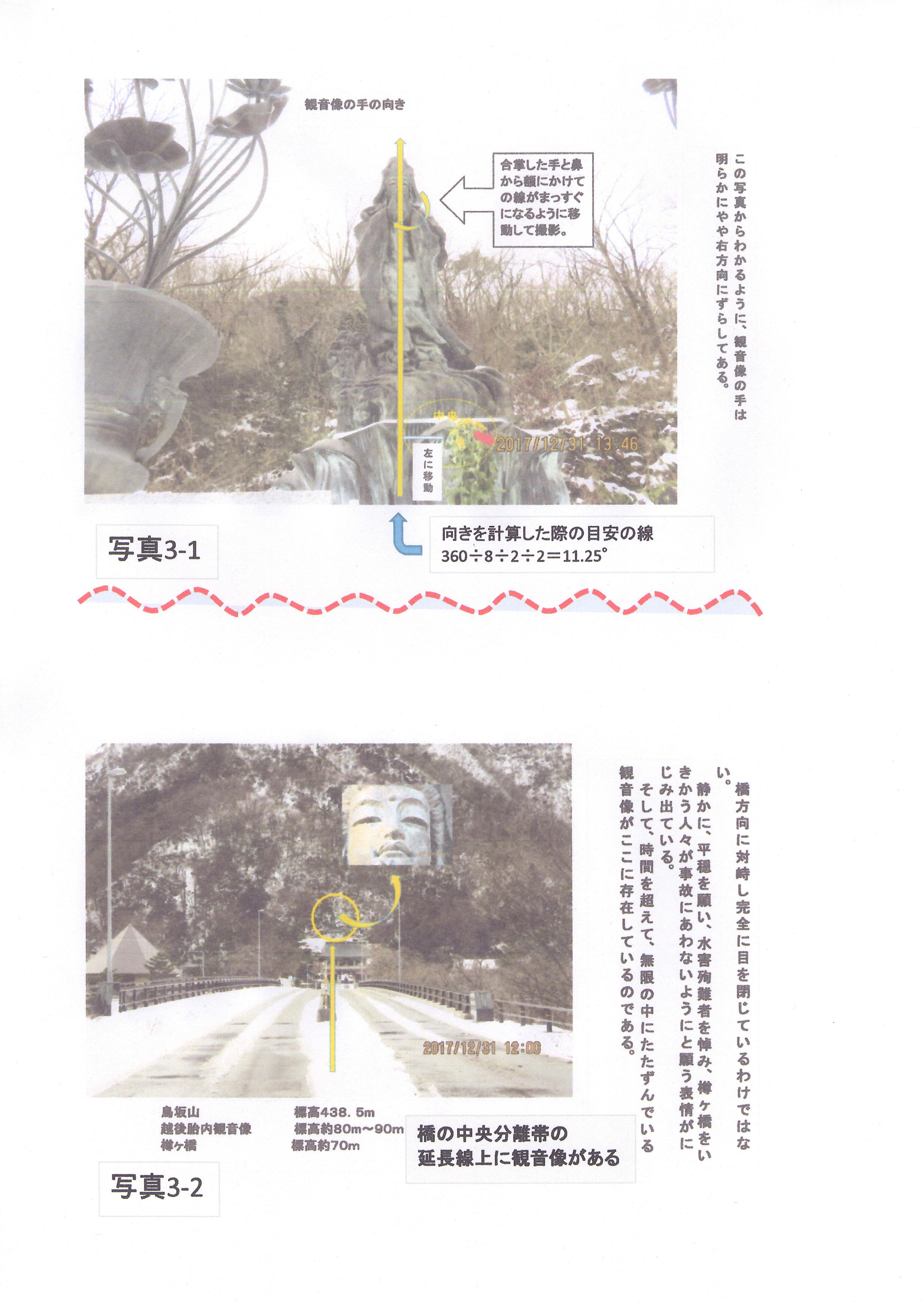 越後胎内観音像については蓮華台から、ある程度の方位角が計算できた(写真3-1参照)。
