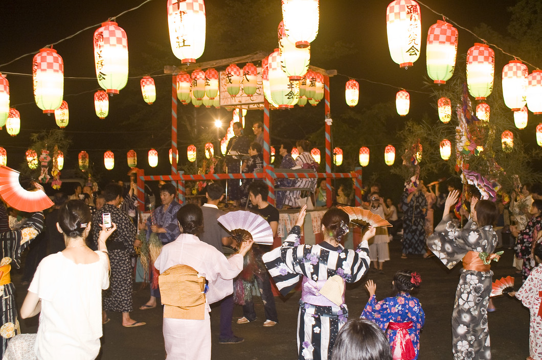 岐阜県の郡上踊り(ぐじょうおどり)は、中世からの古い踊りの流れを継承しており、17世紀頃の江戸時代から盆踊りとして始まった。お盆には身分の隔てなく無礼講に踊ることを奨励されていたことから、現在でも訪れた観光客が踊りの輪に参加できる。また、秋田県羽後町の西馬音内(にしもない)盆踊りも古くから続くもので、祭の起源の記録がなく伝承によるものだろうと言われるが、13世紀の鎌倉時代に修験僧が豊年祈願に踊らせたという説がある。野性的なお囃子と上方風の優美な踊りが特徴で、編み笠や目の穴を開けた黒い頭巾をすっぽり被る。顔を隠して踊ることから「亡者踊り」という別名がある。