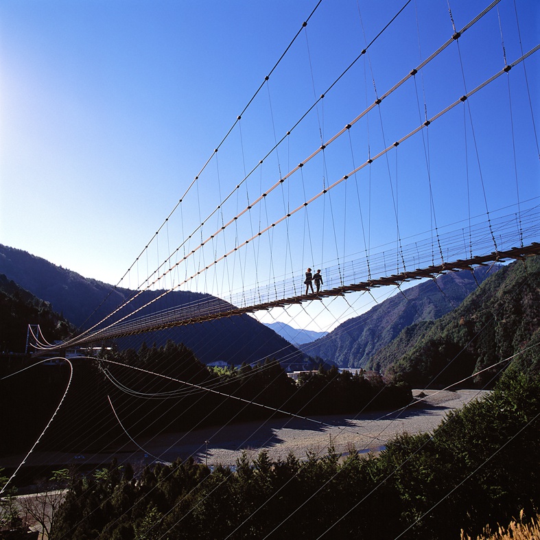 私の父の郷里である十津川村は、紀伊山地の中央にあり、奈良県の南端・奥吉野に位置する。和歌山県と三重県に隣接し、高峻な山岳と清く碧い十津川の瀞峡(どろきょう)、空中散歩の感覚で絶景を望める谷瀬の吊り橋(全長297m、高さ54m)、人力で進むロープウェイの野猿など、昔の古里の風景が現存している。東京23区を少し上回るという広大な面積を誇るこの村は「日本で一番大きな村」なのである。