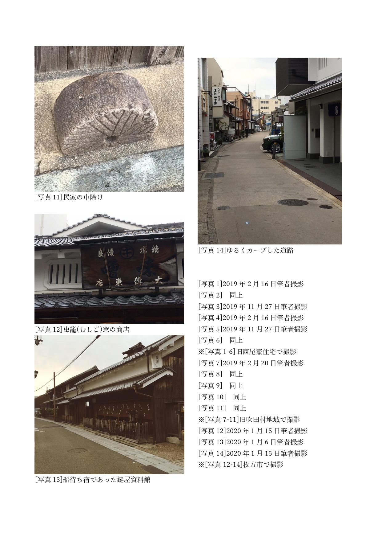 (17)枚方は寺内町(真宗寺院を中心とした集落)でもあったため、外部から敵が攻めてきても直進できないようにするために工夫された。枚方観光ボランティアガイドの方より聞き取り(2020年1月15日)