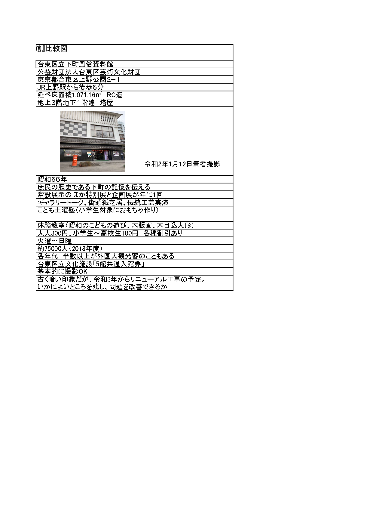 5.同様の事例との比較ー『台東区立下町風俗資料館』(以下「資料館」)との比較(資料5)