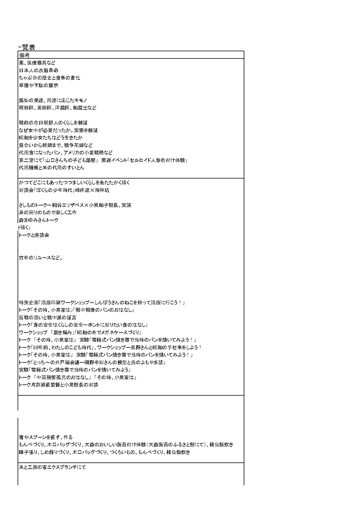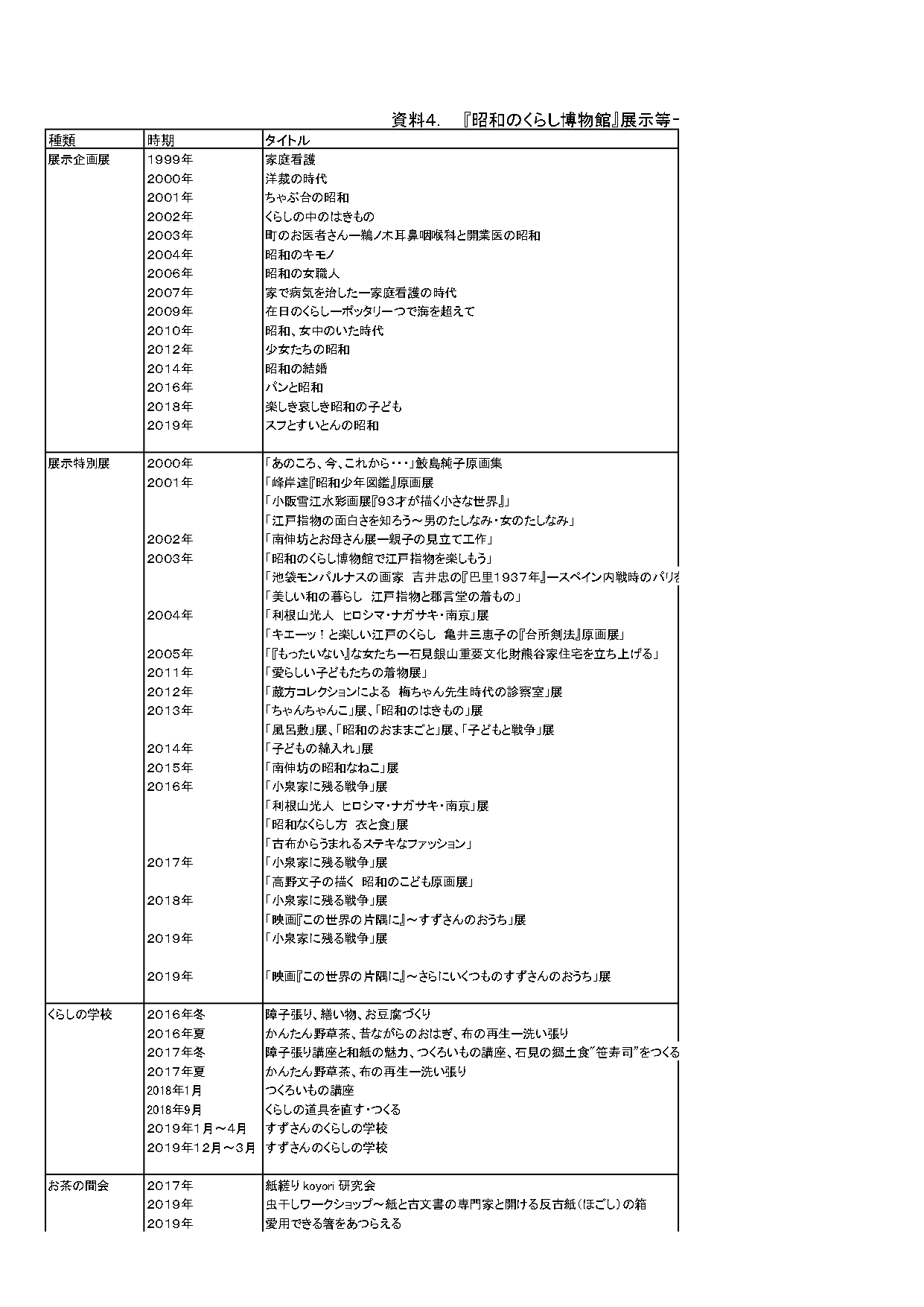 資料4『昭和のくらし博物館』展示等一覧表