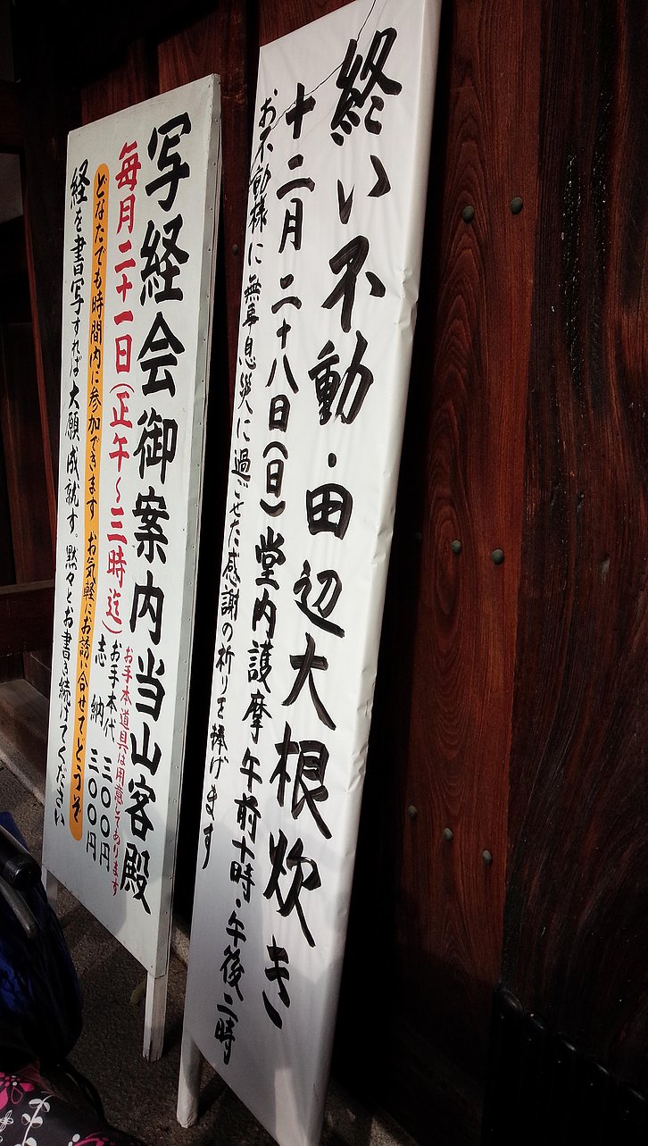 次に、大根を利用した行事としては、聖護院大根を利用した千本釈迦堂の大根焚がある。この大根焚は、お釈迦さまが悟りを開いた日にあやかり参拝者の悪魔よけにされていたのを、健康増進を願う信徒の手に受け継がれて今の姿になったといわれ、信徒により大根を焚いたものが振る舞われる。聖護院大根が使われていたが流通量が少なく違う種の大根も利用している。