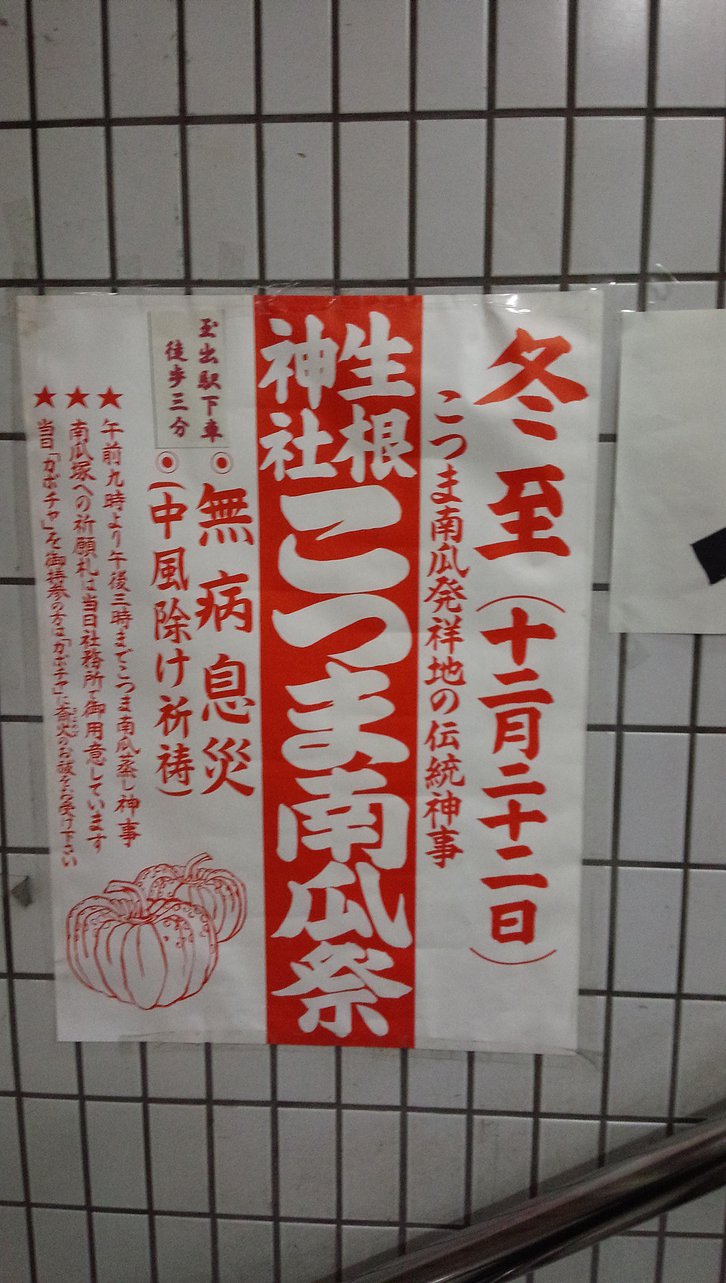 冬至の日に生根神社で行われている行事である。冬至の日に生根神社の境内で参拝者にこつま南瓜を使用した従姉妹煮が振る舞われ、参拝者の無病息災や中風除けを祈願する。