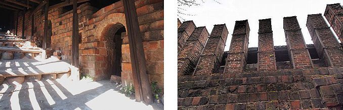 真ん中の画像:壁や地面など、いたる所に土管が使われている。当時、不良品も大量に出たようで、再利用により、景観作りにも活かされている。