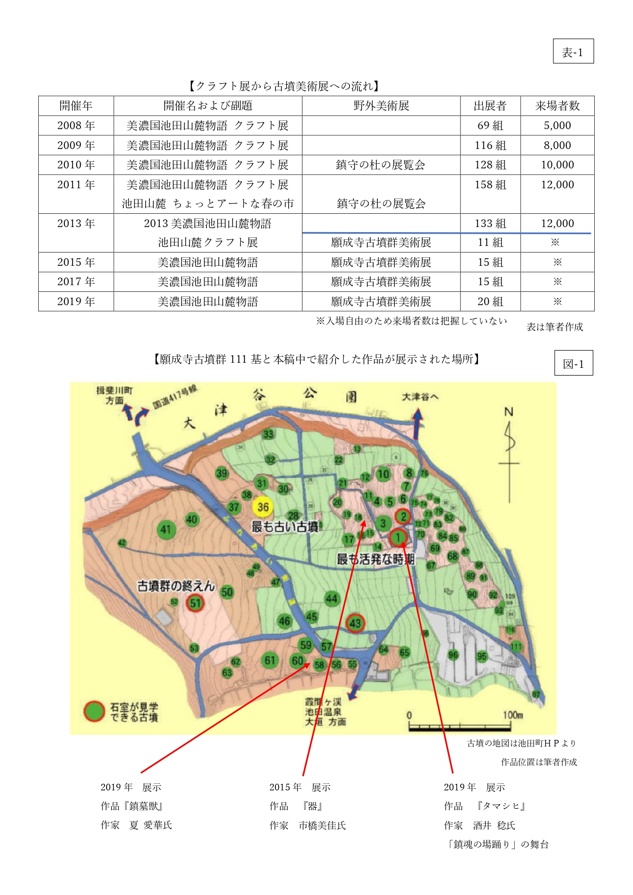 表-1・図-1 クラフト展から古墳群美術展への流れ