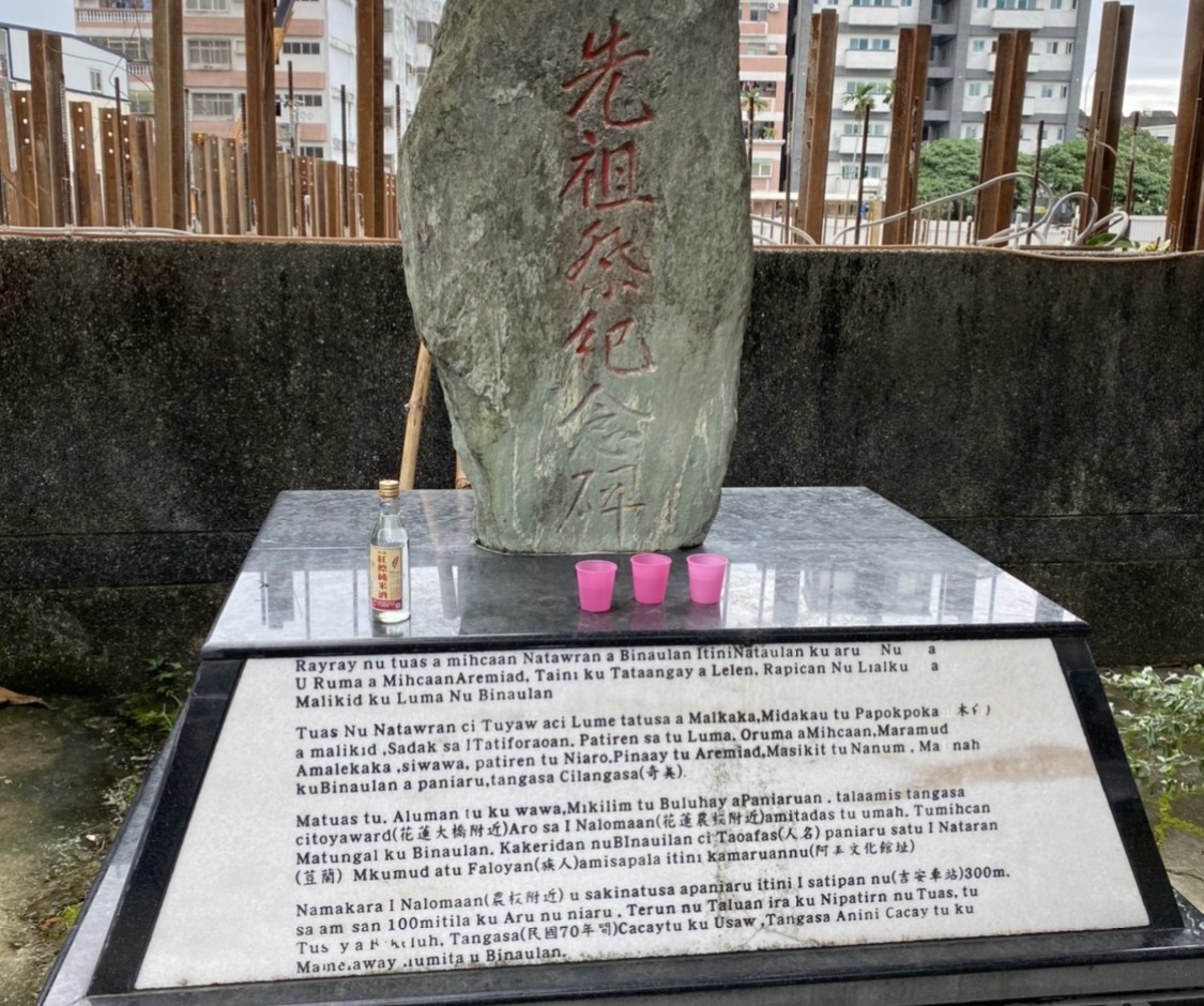 原住民の言語は、オーストロネシア語族に属す。その言語系統は、西はマダガスカル島、東はポリネシア、南はインドネシアまで幅広く浸透し、これらは台湾から南下したとPeter Bellwoodは調査をまとめている[3]。この行事会場の近くに花蓮県吉安郷アミ族文物館[写真参照3]があり、先祖を記念した石碑[写真参照4及び5]がある。アミ族の言葉でこの地に先祖が移り住んだ流れが記載されている。当時はその部落の集会所の中央に、この石碑が立っていたとある。台湾原住民族の祭禮に関する中国語書籍[4]を確認しながら、豊年祭というものがアミ族にとって年間で最重要な儀式であることを理解した。