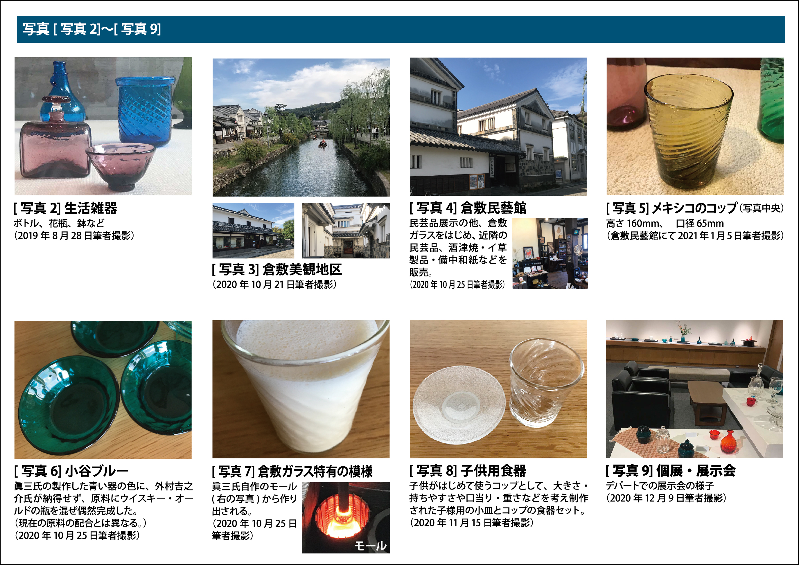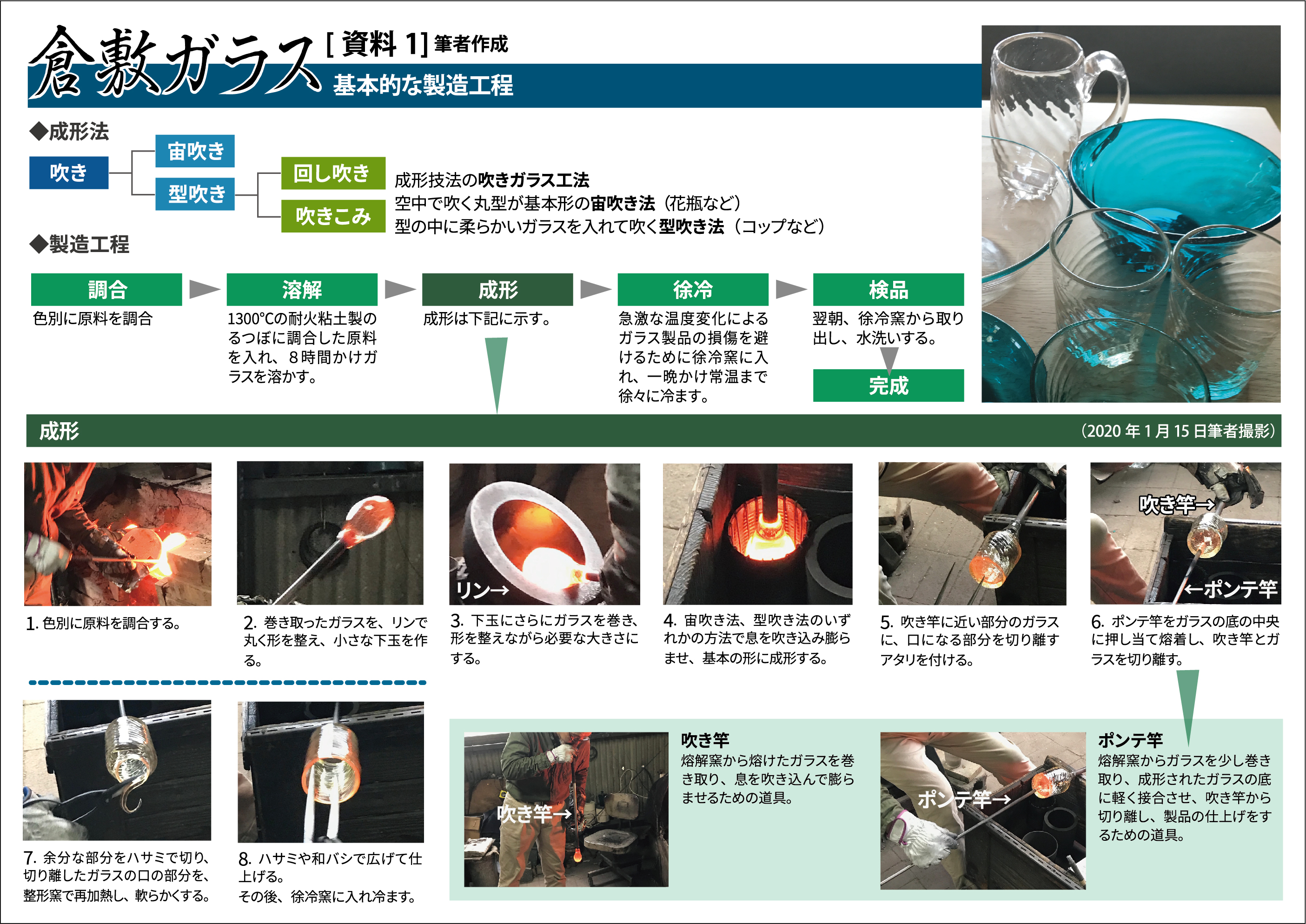 初夏に倉敷ガラスのコップ[写真1]で麦茶を飲むと、筆者は「夏が来た」と実感する。この手仕事で作られたコップは職人の姿や背景までも想像させる。では、なぜそのような感覚を与えるのか。また、どのような価値を持つのか。本稿では倉敷ガラスの今後の継続や可能性も含め、文化資産としての価値を考察する。