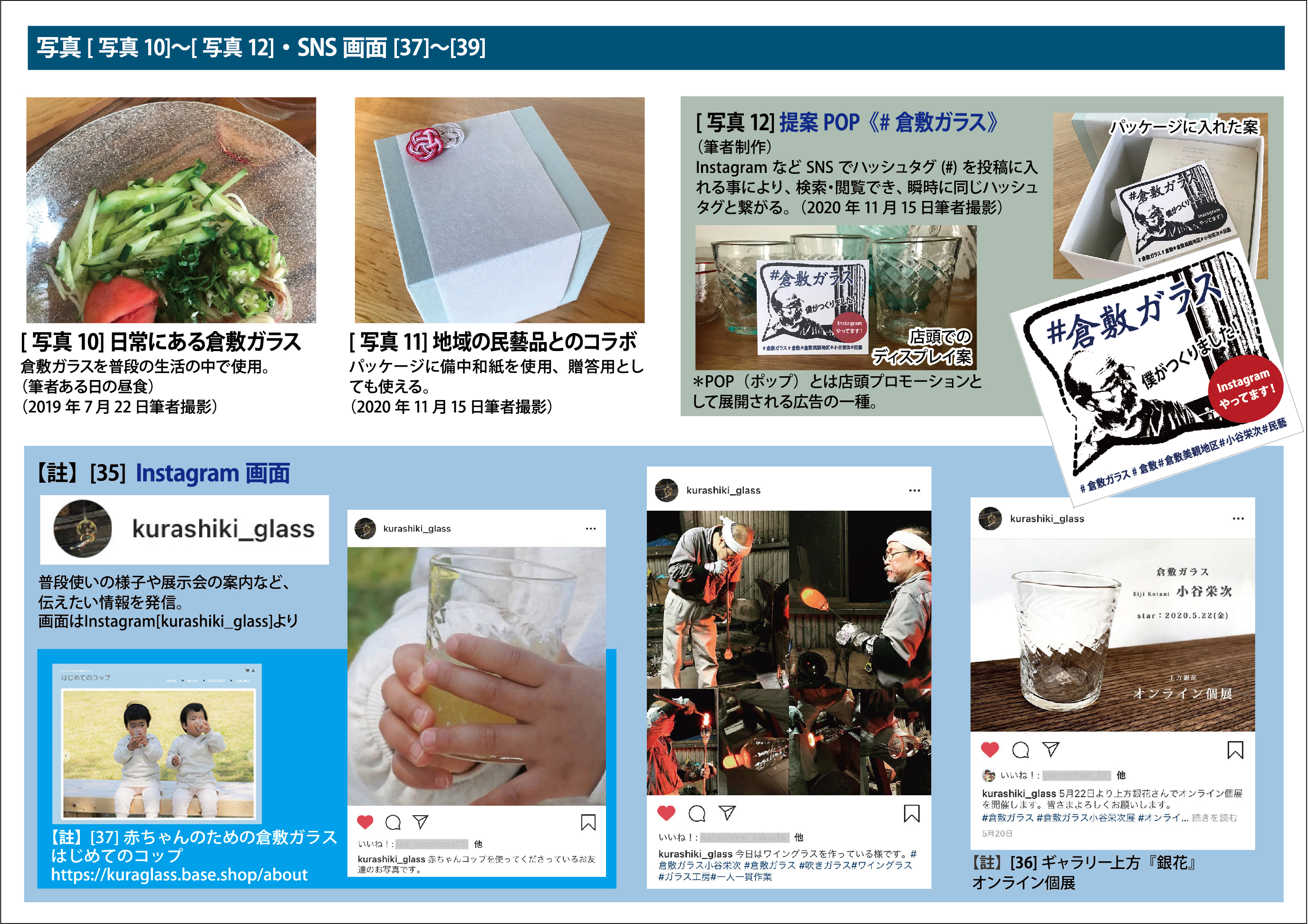 栄次は手探りでSNSを始めた。しかし、手応えはない[38]。制作活動、普段使いの様子、展示会の案内などの告知、また、個々の情報発信を促し、購買層の獲得などのため、新たなツールが必要だと考える。そこで、筆者は店頭POP(ポップ)を提案したい[写真12]。これを糸口に、InstagramなどSNSでの相互の情報[42]を広範囲に瞬時に共有する事ができるのではないか。