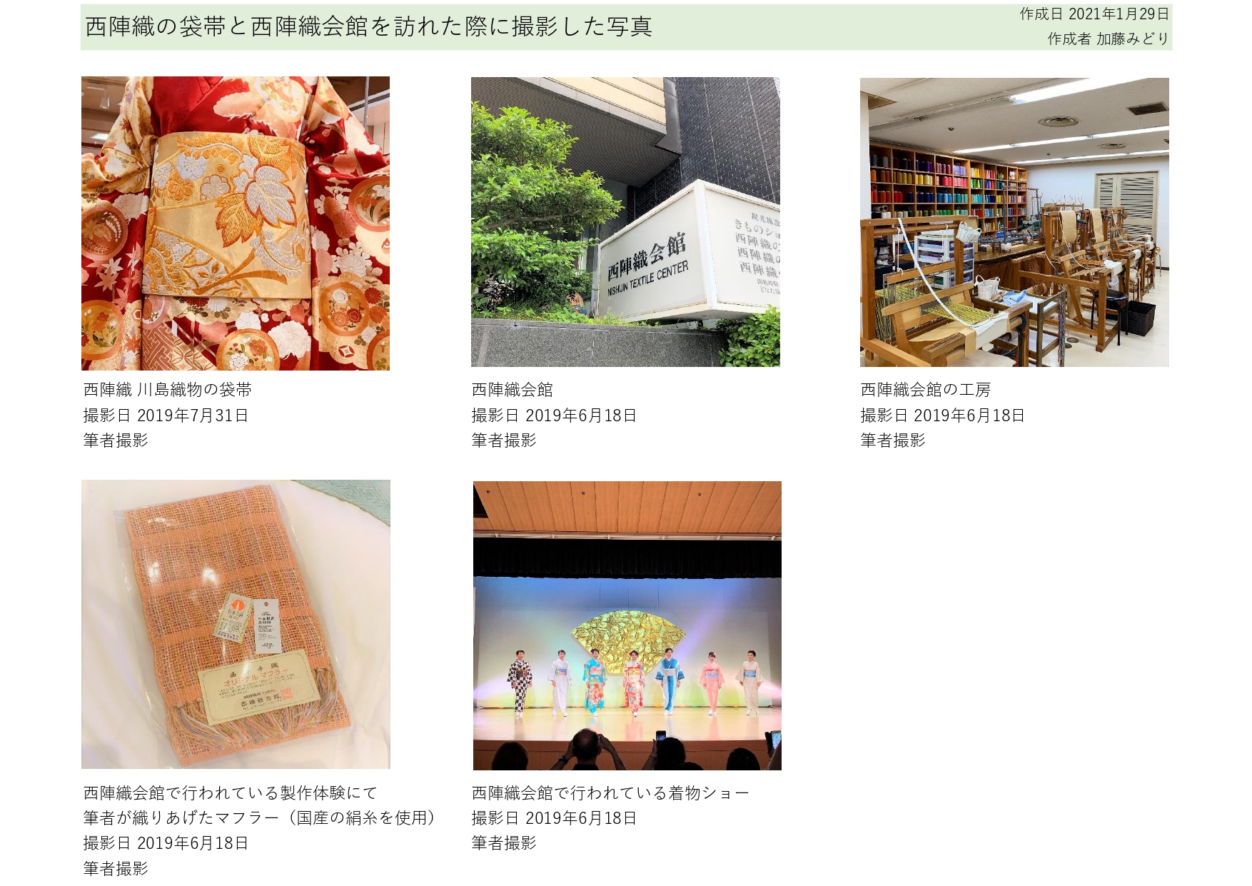 2019年6月18日西陣織会館にて筆者が撮影した写真と、西陣織の袋帯の写真