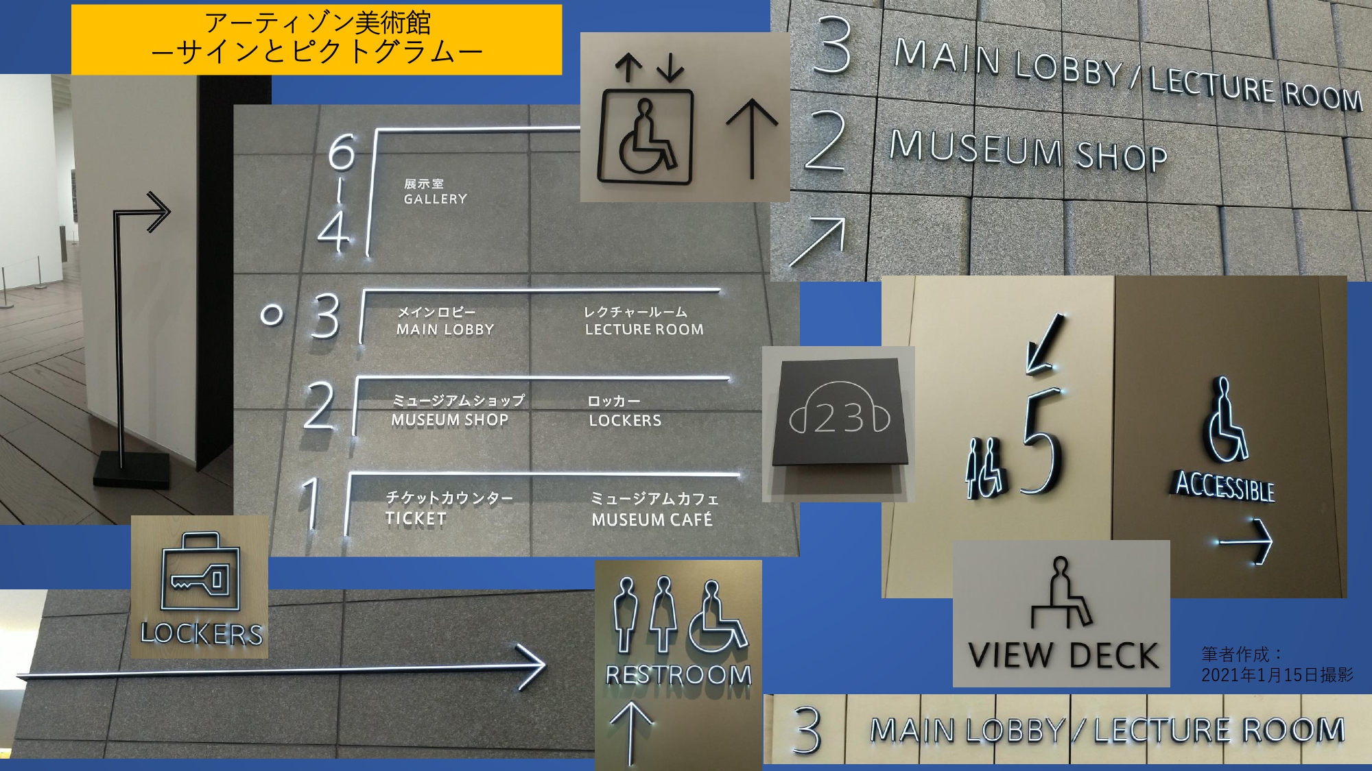 視線の誘導物<アーティゾン美術館のサインとピクトグラム集>:筆者作成。写真撮影も。 -