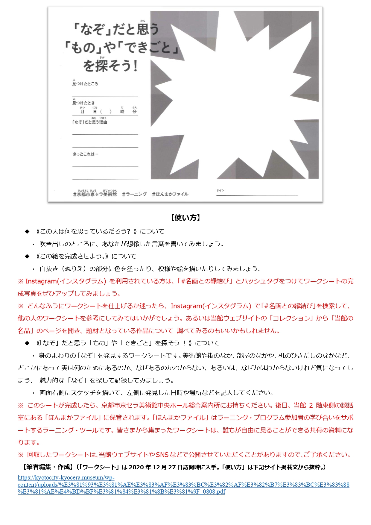 京都市京セラ美術館ワークシートと使い方:筆者編集・作成 -