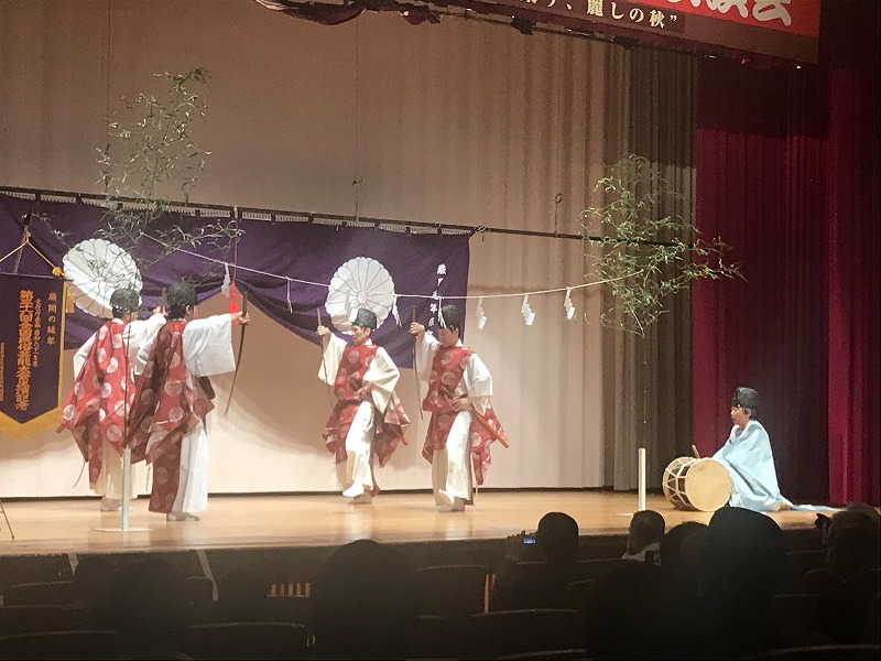 写真4 蕨岡延年の舞(太平楽)(第60回遊佐町民俗芸能公演会にて)(2019年10月27日、筆者撮影) -