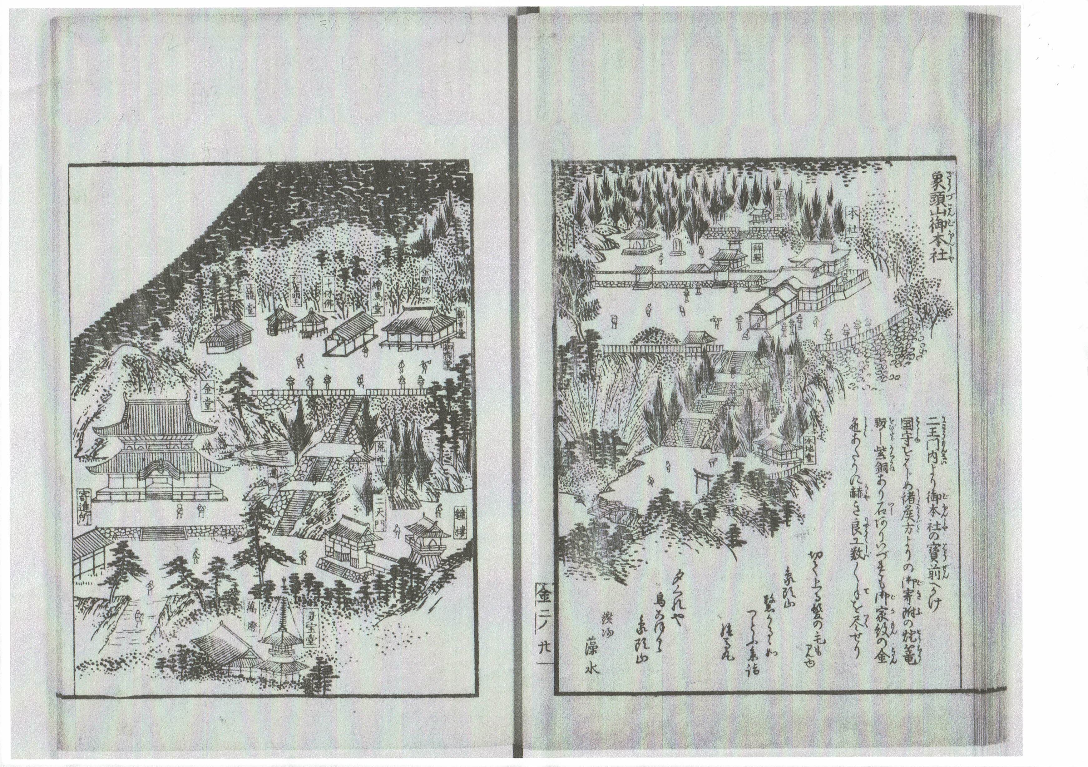 • [図₋1] 金比羅参詣名所図會2(1847年刊行 弘化4年) 最上部の本社正面の右側(北方向)が展望台で、琴平市内や琴平沖が見える。