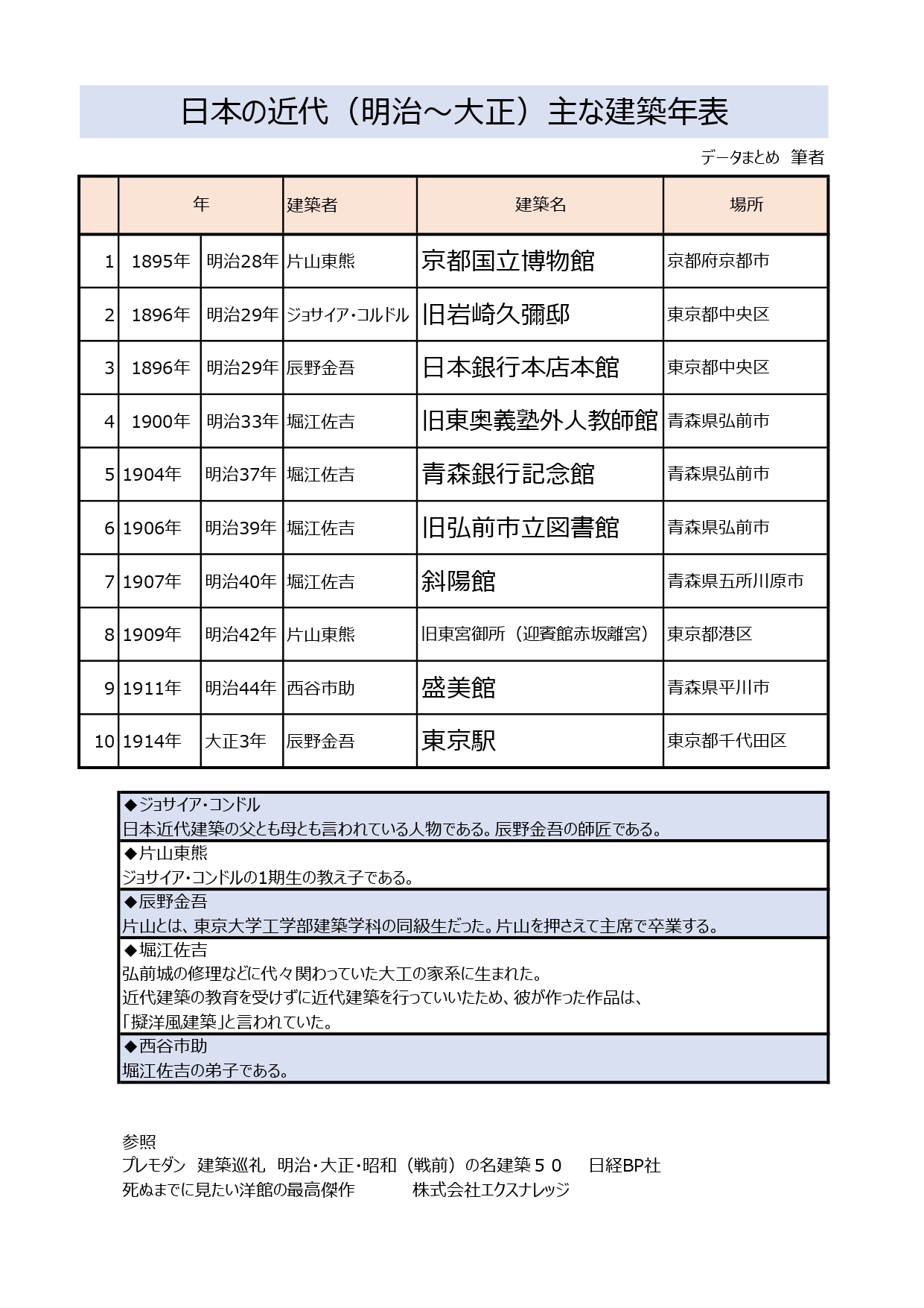 同時期の近代建築を学んだ代表的な建築家とされている、東京駅を誕生させた辰野金吾がいる。