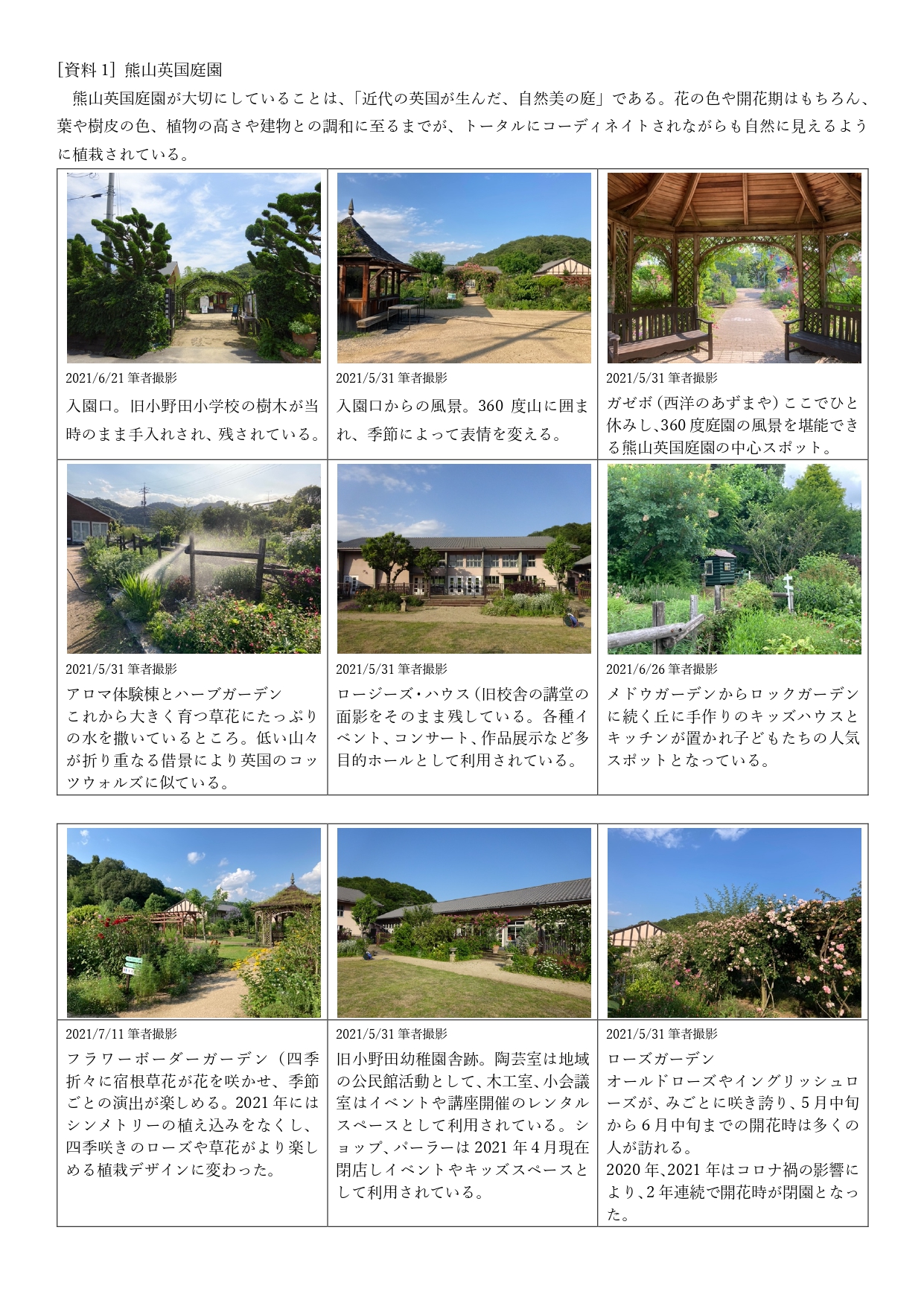 [資料4]熊山英国庭園周辺の写真資料[図1]・深山イギリス庭園庭園周辺の写真資料[図2]、筆者作成。 -