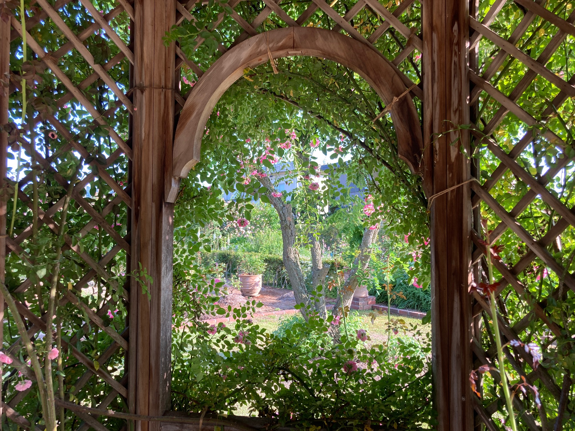 [9]ガゼボ:西洋のあずまや。毎年5月中旬から6月中旬ごろにはバラの花がガゼボを覆い見事に咲きほこる。2020年、2021年の2年間はコロナ禍の密を避けるため閉園となったため公開出来なかった。