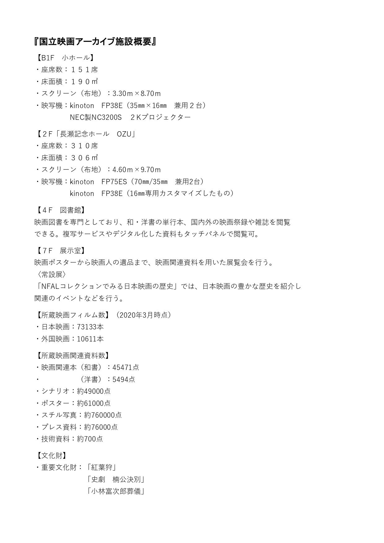 2018年:独立行政法人国立美術館の6番目の館として「国立映画アーカイブ」設立