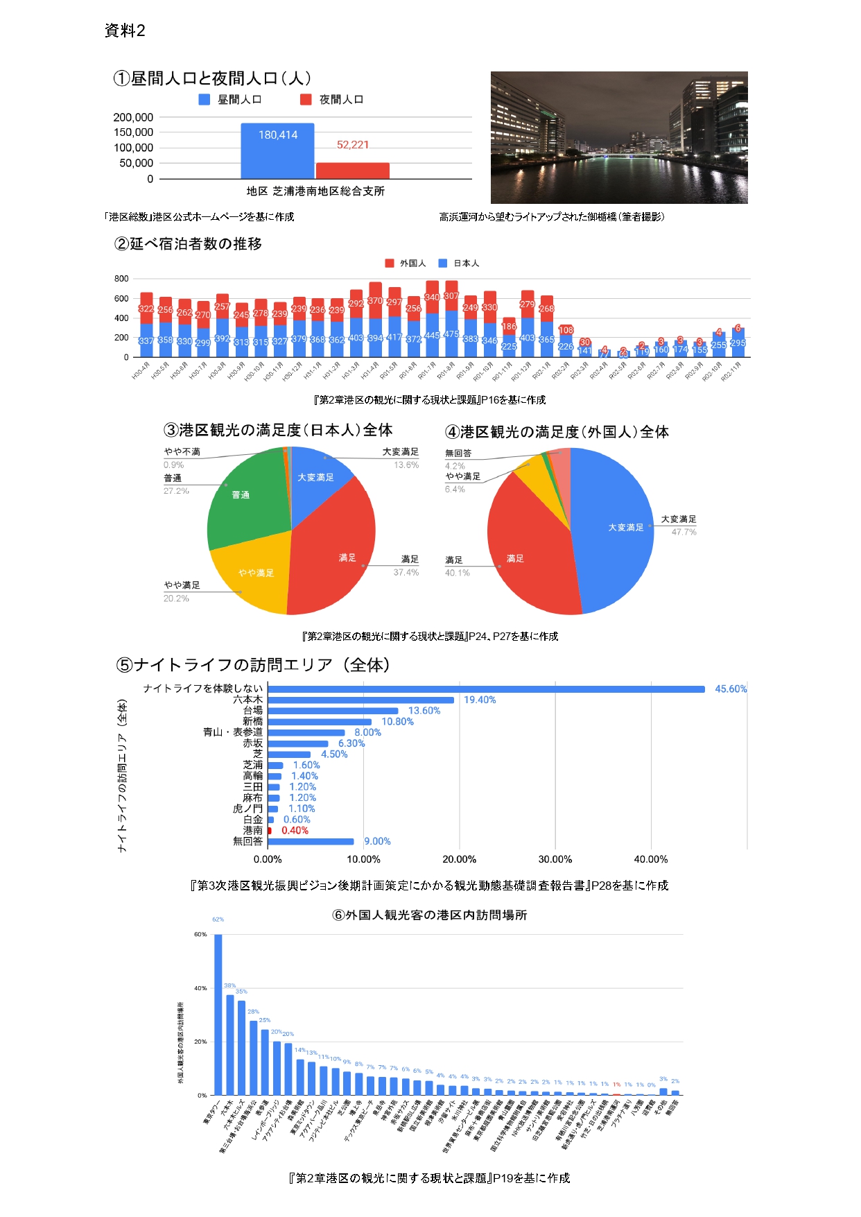 ⑥『第2章 港区の観光に関する現状と課題』、「第3次港区観光振興ビジョン『後期計画』2021年度〜2023年度」港区、産業・地域振興支援部 観光政策担当、2021年3月、