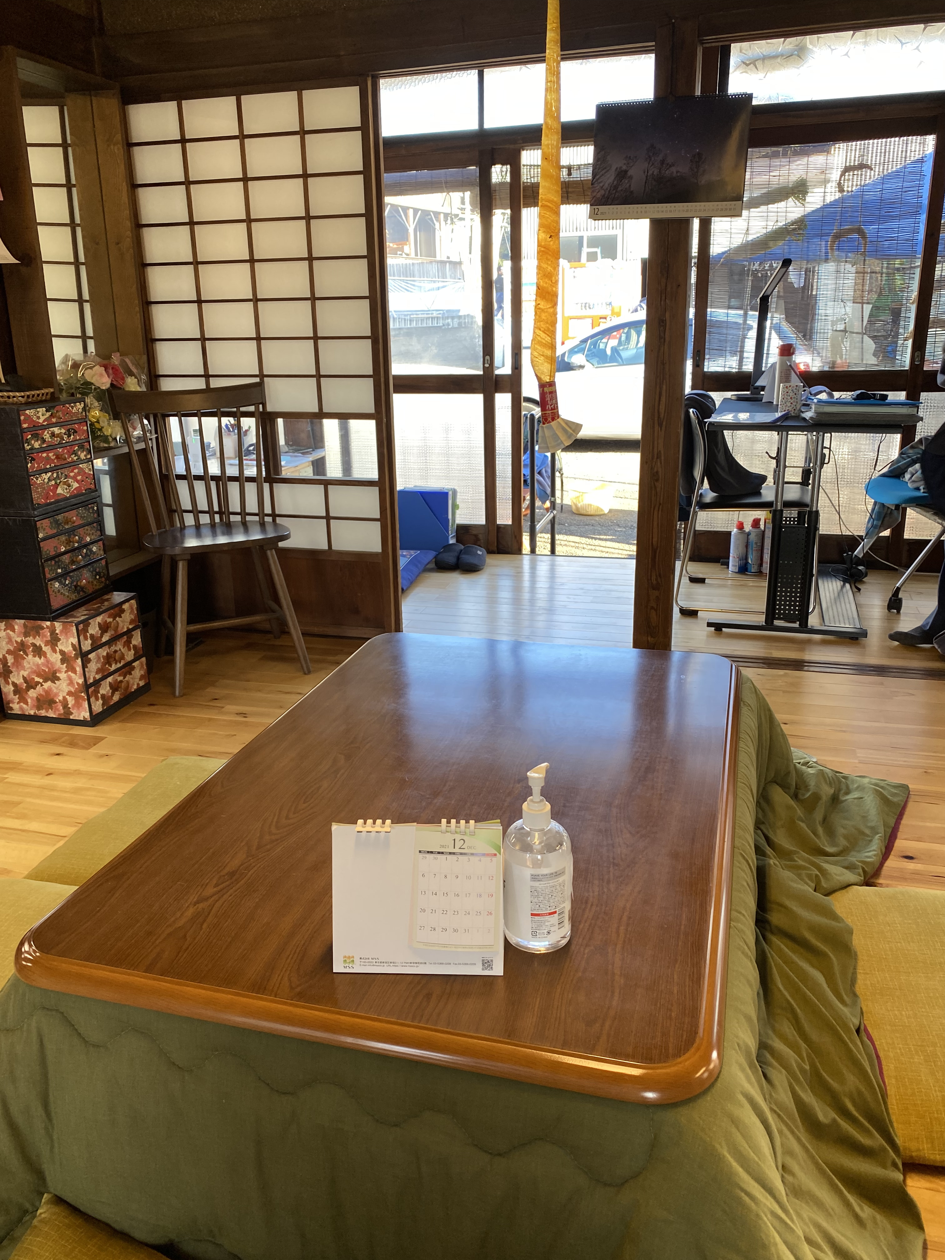 資料4:こたつが置かれた待合室。こたつを囲むことで始まる会話もあるだろうし、何より医療機関だということを忘れてくつろげそうな空間である(2021年12月16日、筆者撮影) -