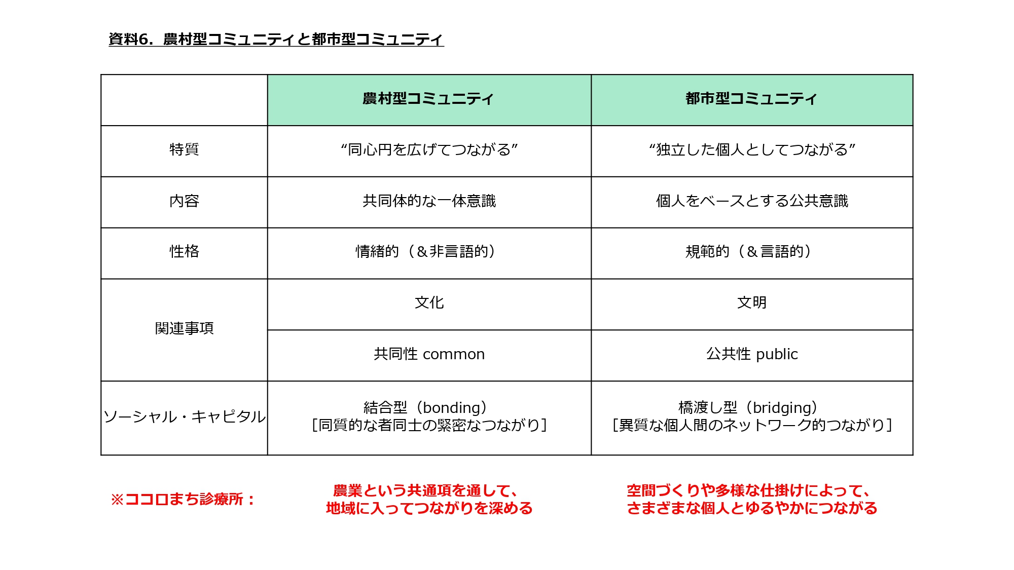 資料6:農村型コミュニティと都市型コミュニティ