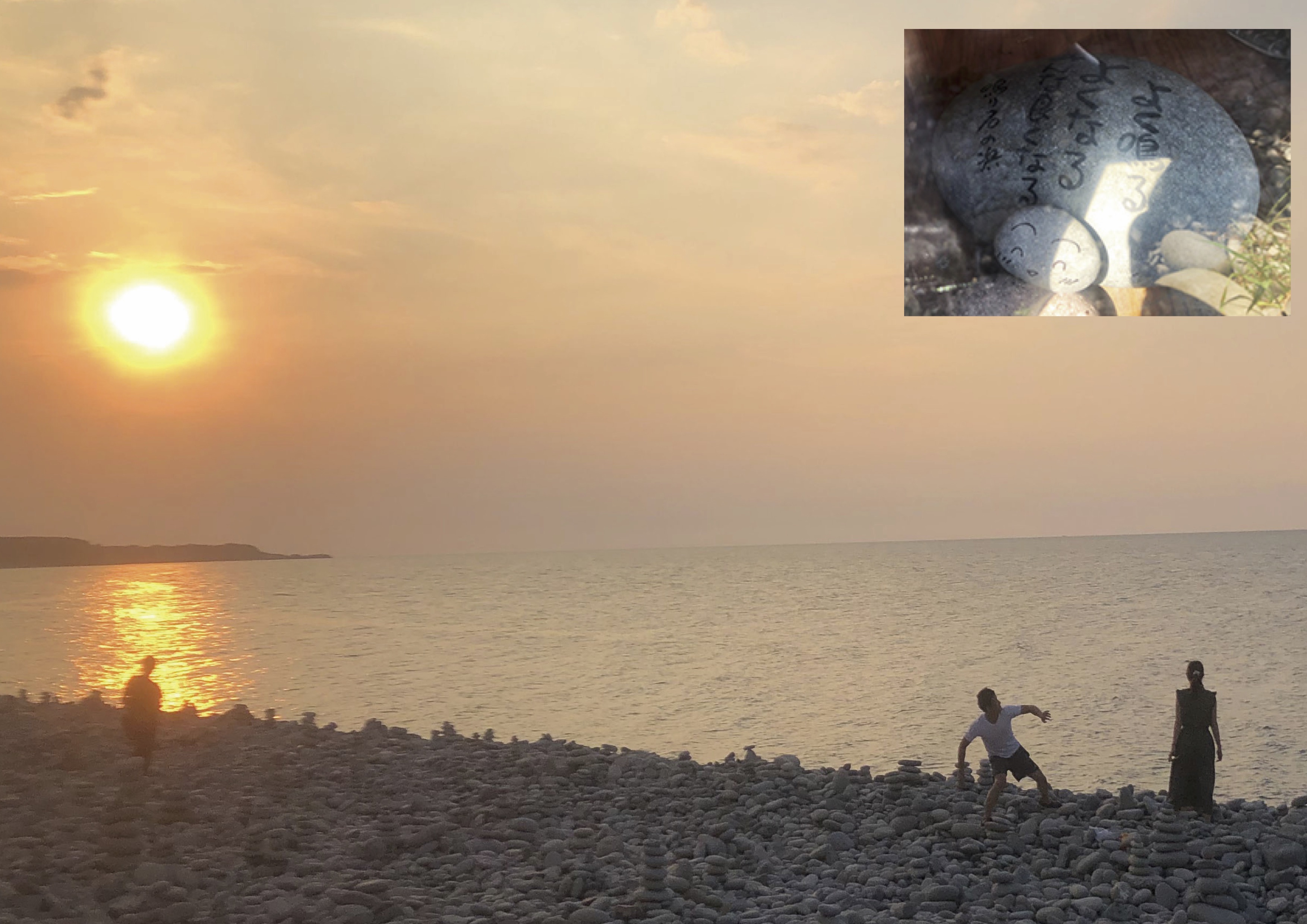 図ー4 石絵馬 願い事を石に書いて海に投げ入れる。(2021年8月1日、筆者撮影) -