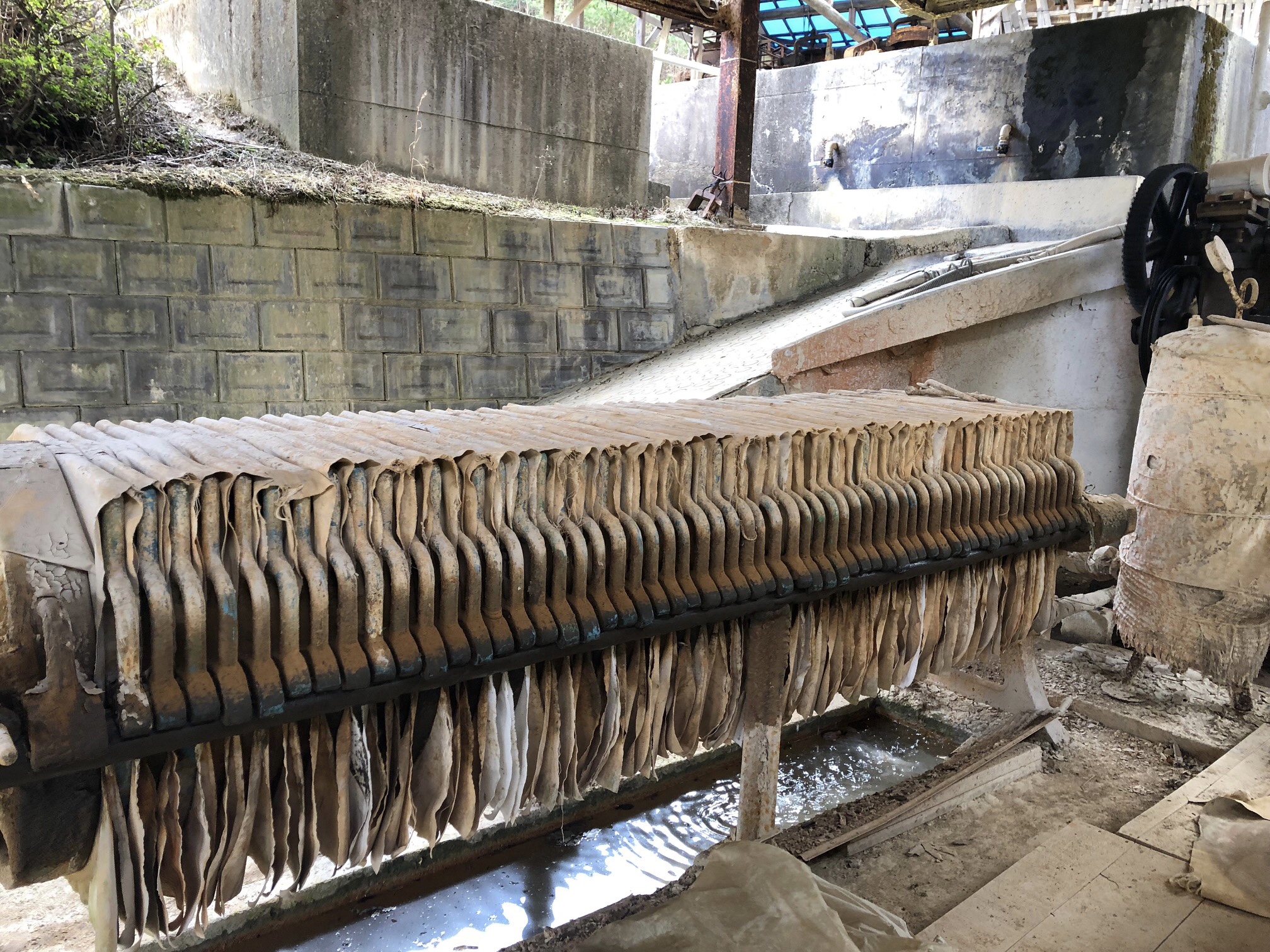原土を水に晒す水簸(すいひ)を行なった後、フィルタープレスで約6時間かけて脱水する。 -