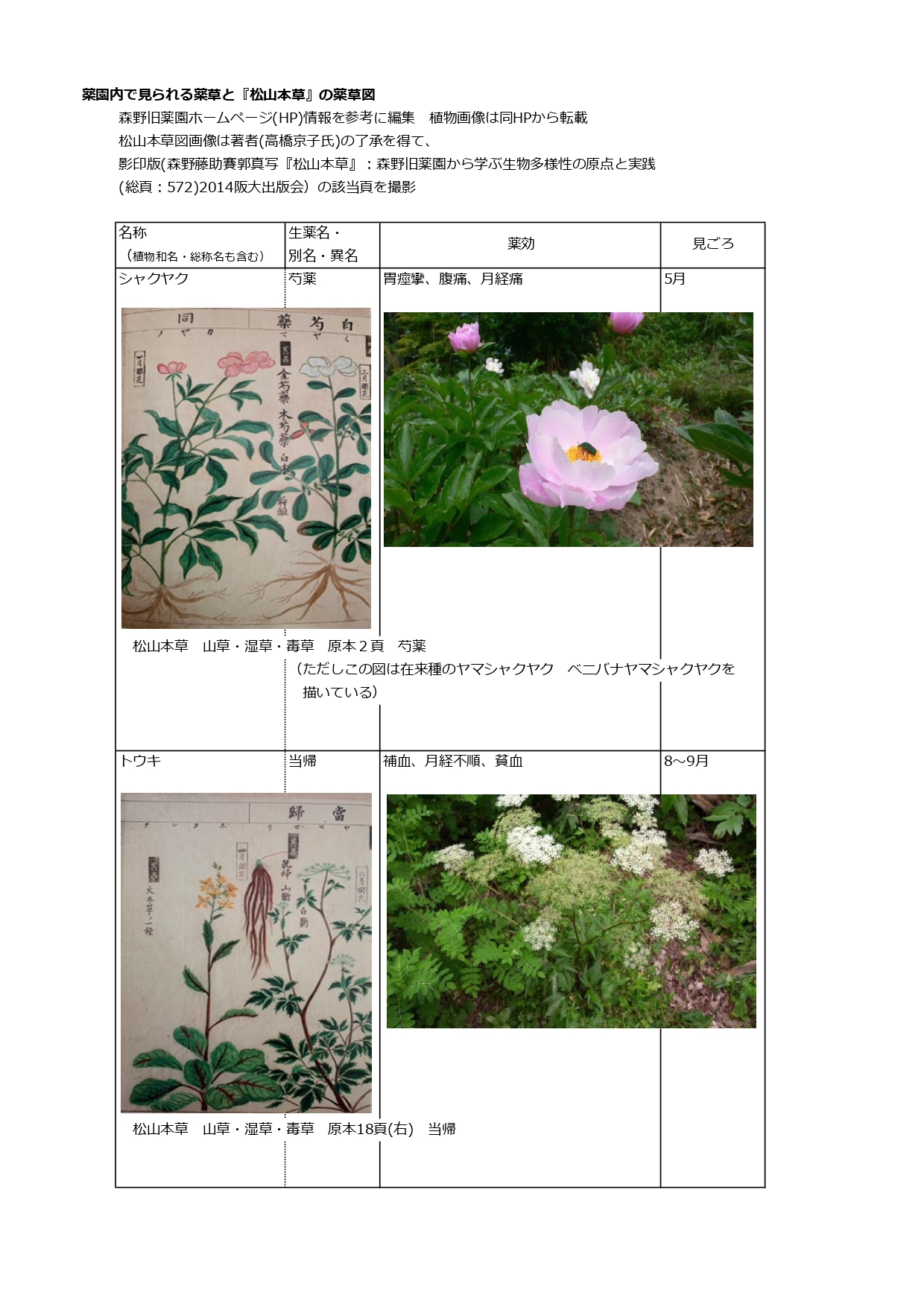 資料作成に当たって、大阪大学招へい教授・森野旧薬園顧問相談役 高橋京子教授、および、森野旧薬園顧問 森野様には、ご多忙にもかかわらずご指導、ご協力を賜りましたこと、厚くお礼申し上げます。