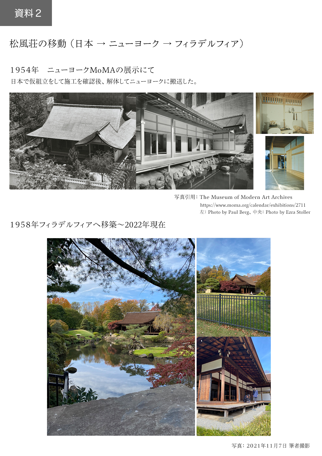 (Micheal J. Lewis 2020 , Shofuso and Modernism: ‘Mid-Century Collaboration Between Japan and Philadelphia’ , World Street Journal, 2021年11月2日閲覧)