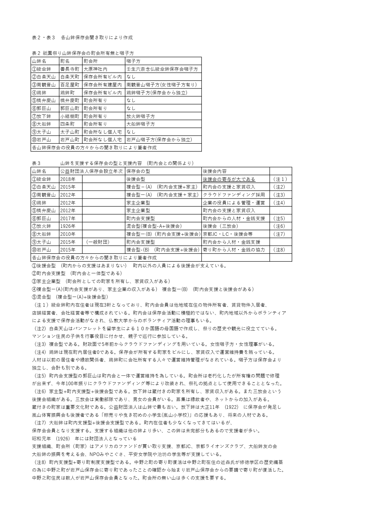 表2・3は、各山鉾保存会役員からの聞き取りにより筆者作成。(2022年7月5日)