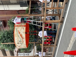 仏教大学生や保存会会員による鉾建て、すべてボランティア活動である。器材や懸想品は神泉苑からトラックで運ばれてくる。