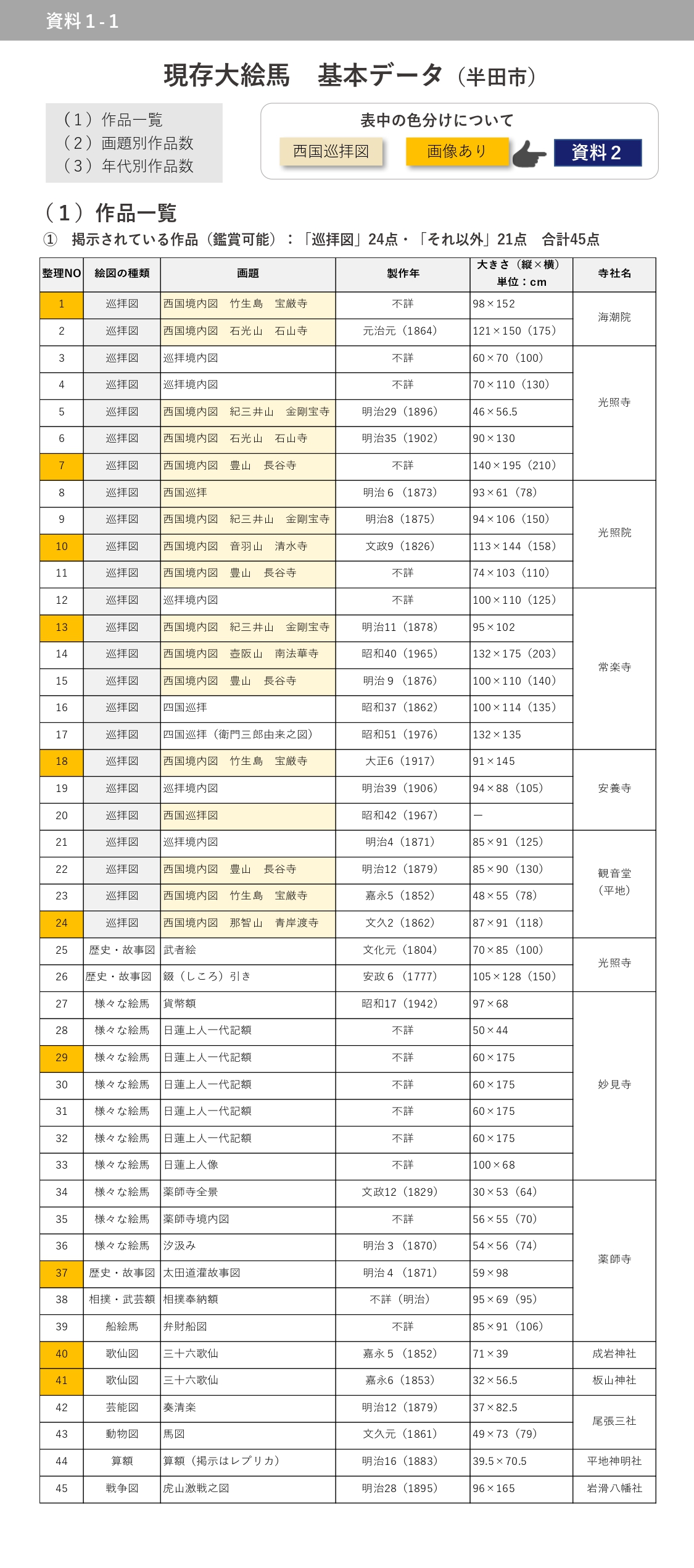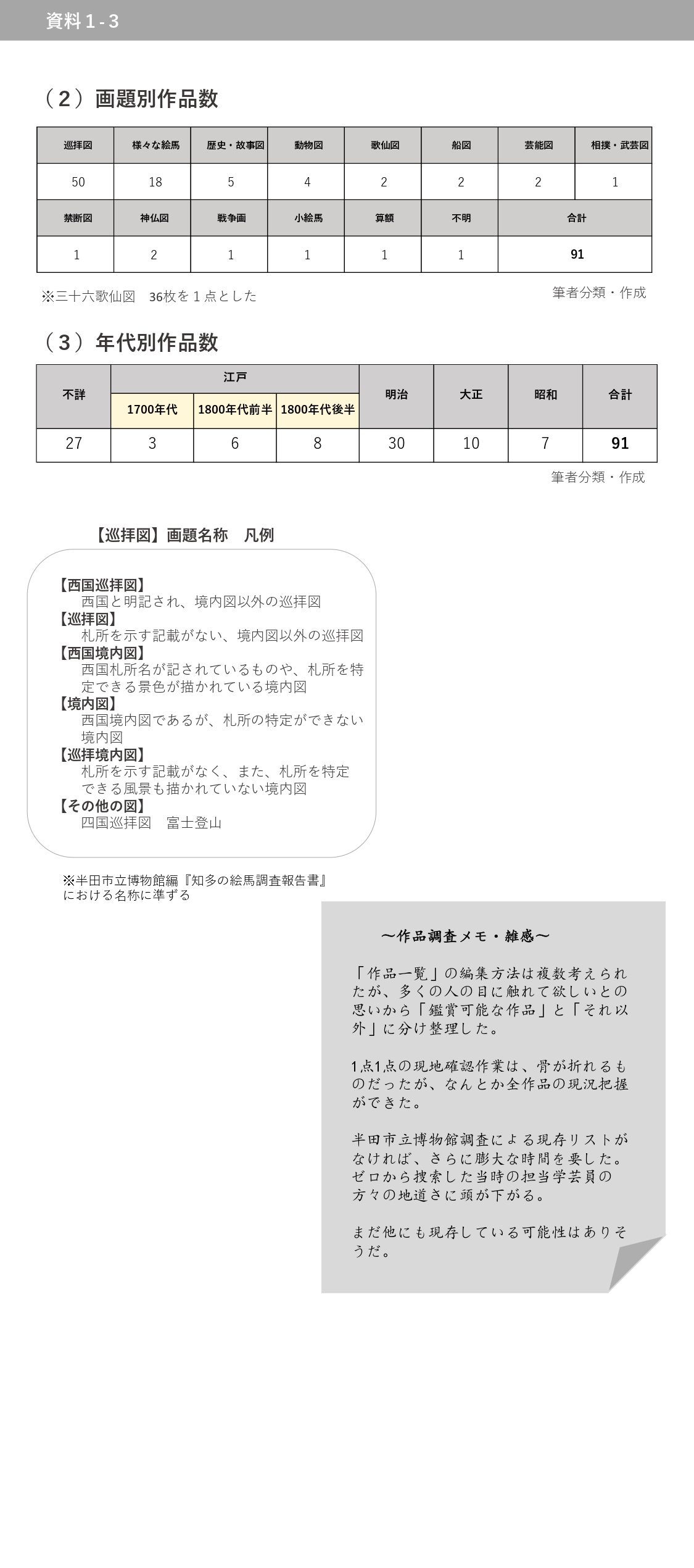 <本稿における画題名称・分類>(半田市立博物館によるものに準ずる)