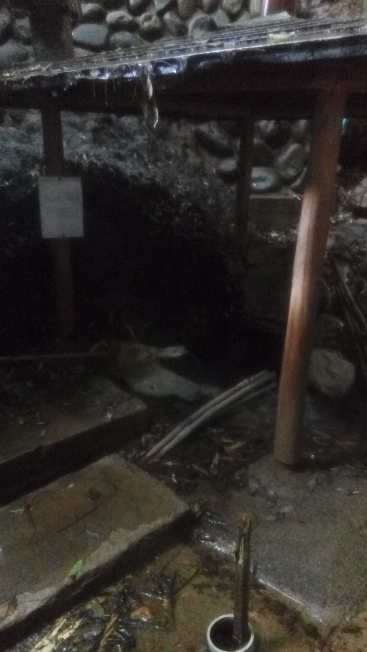 4件の共同湯。時計回りに左上から、松の湯、窪湯、竹の湯、小滝の湯。(筆者撮影、2022年6月15日)。松の湯には、外側に湯だめがあり、生活に必要な(掃除など)湯を汲めるようになっている。組ごとにどの湯にはいるか、決まっている。湯宿民が入っているときは、一般の人も100円支払い、入浴可である。共同湯維持費として、湯宿民は、毎日入浴する家は月3000円、時々入浴する家は月1000円払い、清掃費、維持費にあてている。(山本俊一さんより聞き取り)