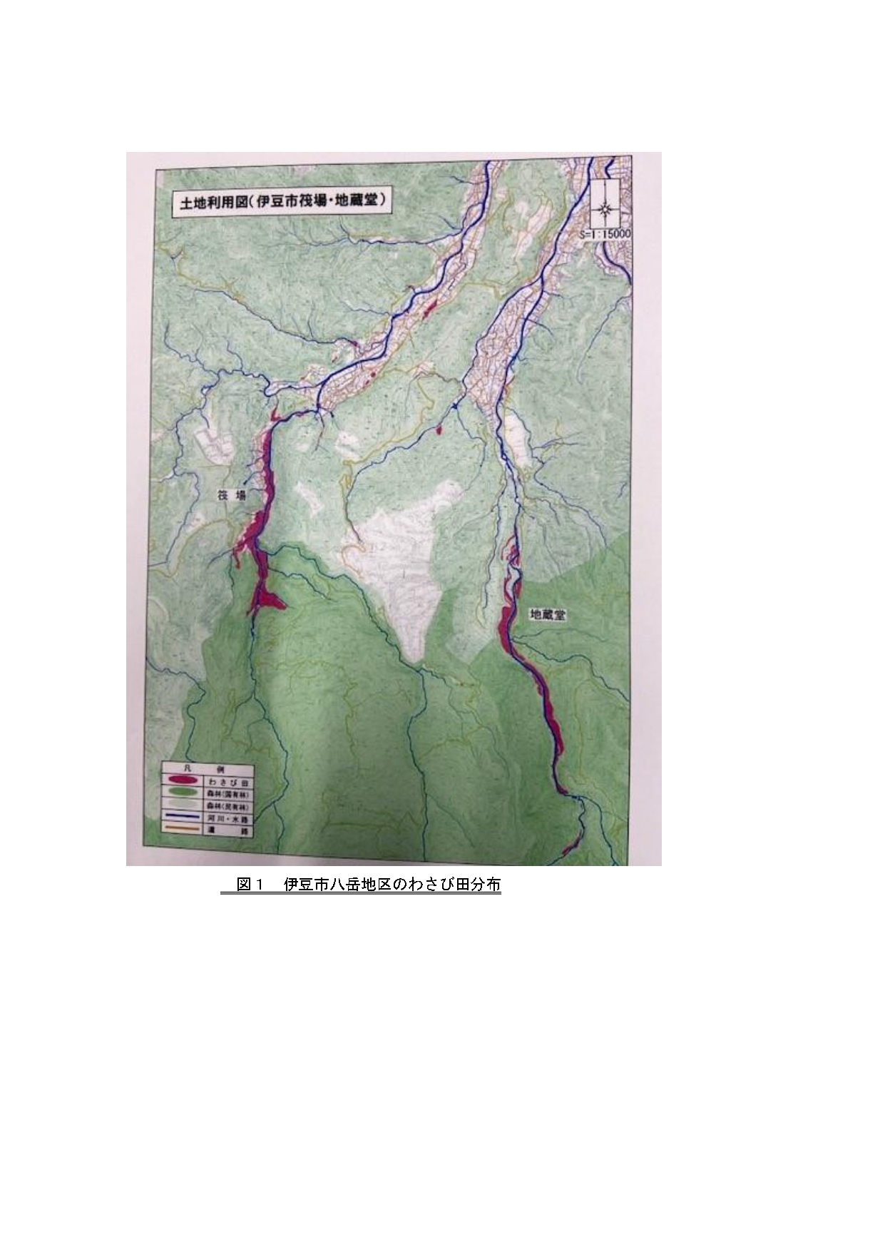 図1 伊豆市八岳地区のわさび田分布 静岡わさび農業遺産推進協議会編 『世界農業遺産への認定に係る申請書 p51』2017 -