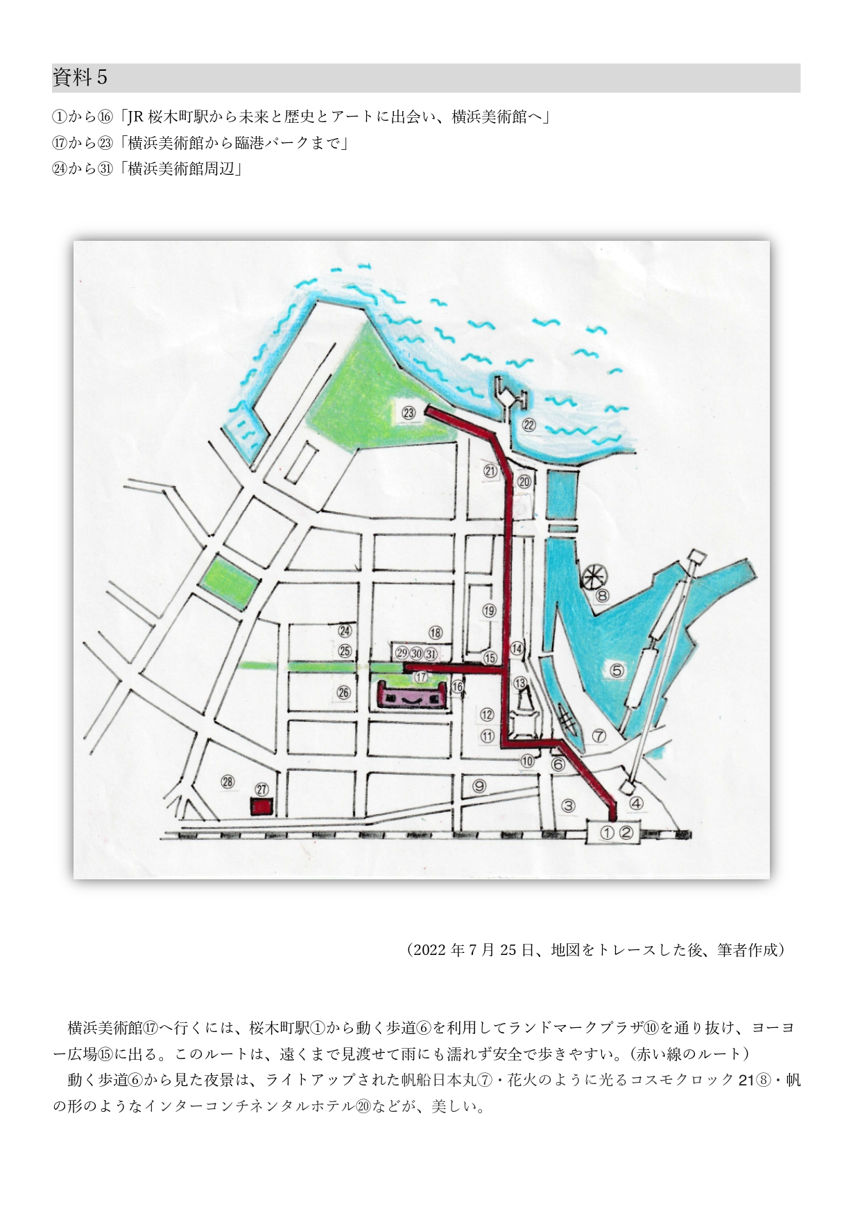 (資料2)「JR桜木町駅から未来と歴史とアートに出会い、横浜美術館へ」(2022年7月29日筆者作成、筆者撮影)