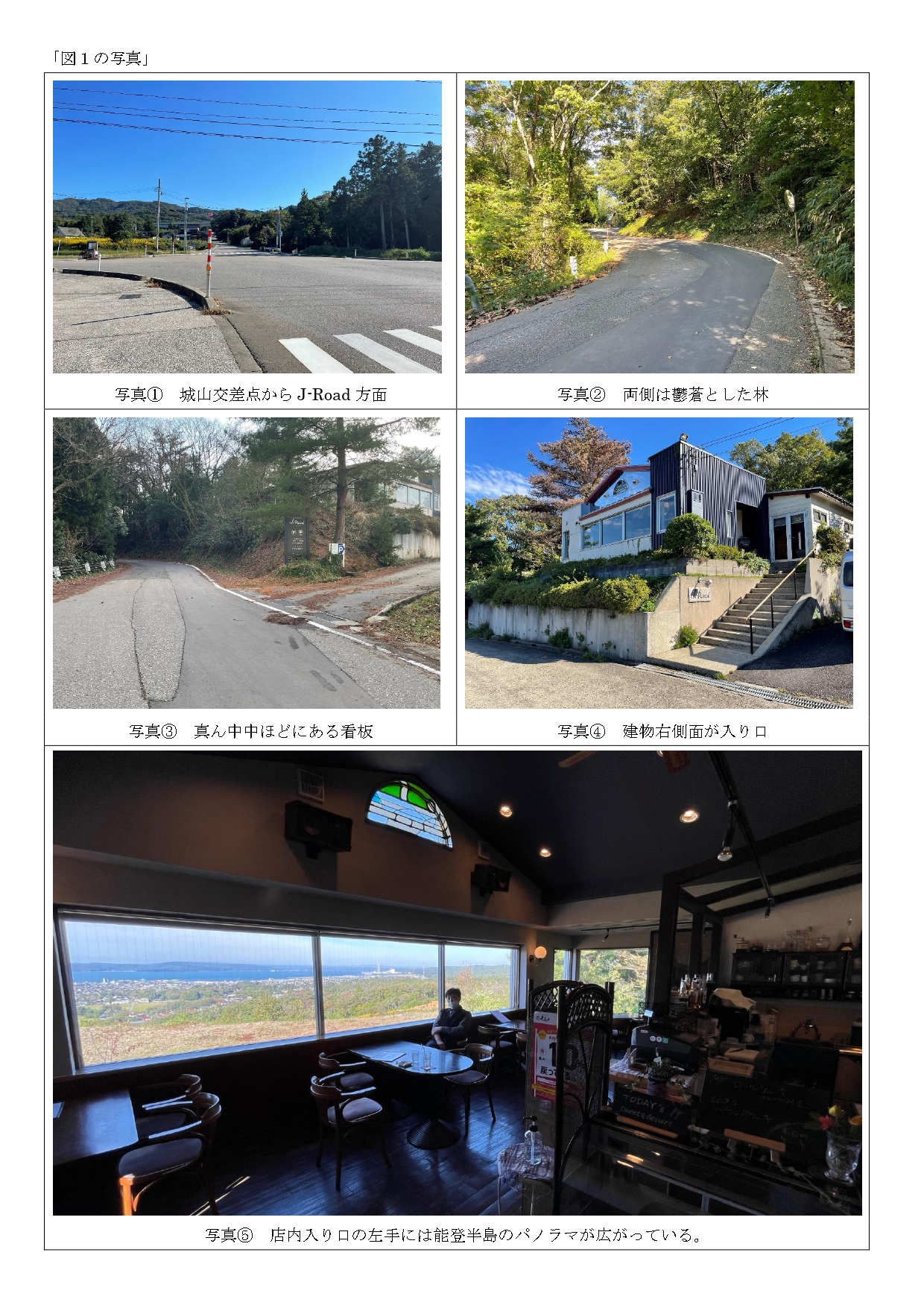 • 資料『Photo Gallery』 素材は筆者撮影の写真とJ-roadのホームページ(能登半島眺望カフェJ,Road https://www.j-road.net/ 最終閲覧日2023/1/22)から森山氏の了解を得て取り込んだ写真を使用。