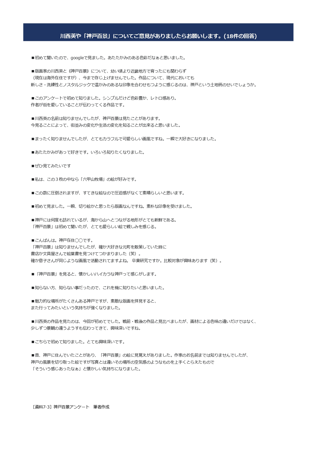[資料7-1.2.3]創作版画家、川西英と「神戸百景」についてのアンケート