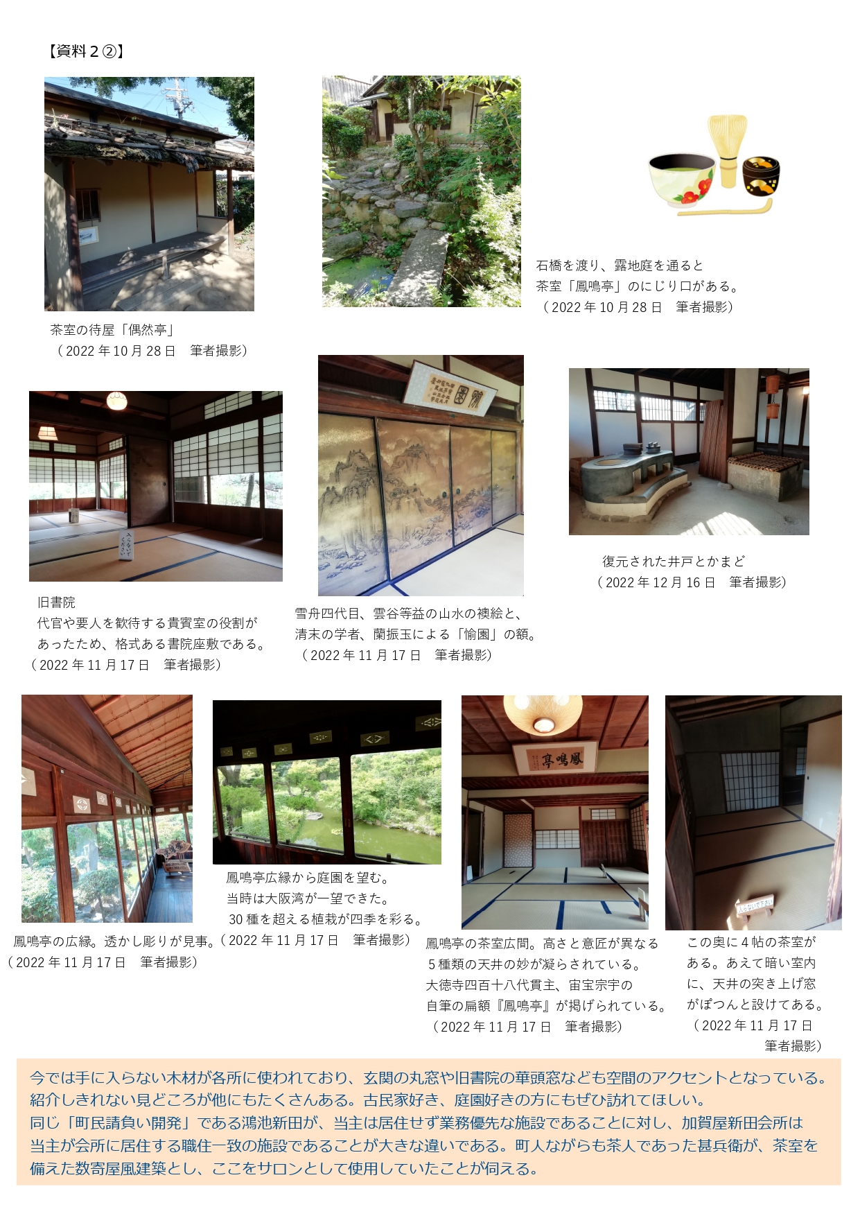 その後、地域固有の歴史的・文化的資源を活用したまちづくりに取り組んでいる住之江区役所では、令和4年3月の区広報誌で加賀屋新田会所跡の特集を組み(11)、特集後に来園者が増加したことが雑記帳からも確認できた。