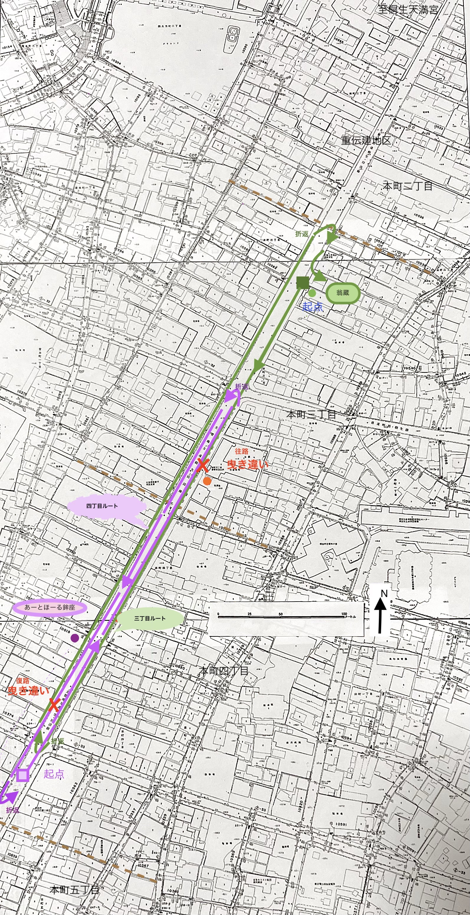 【図4】:「桐生祇園祭」における鉾「曳き違い」巡行ルート。
