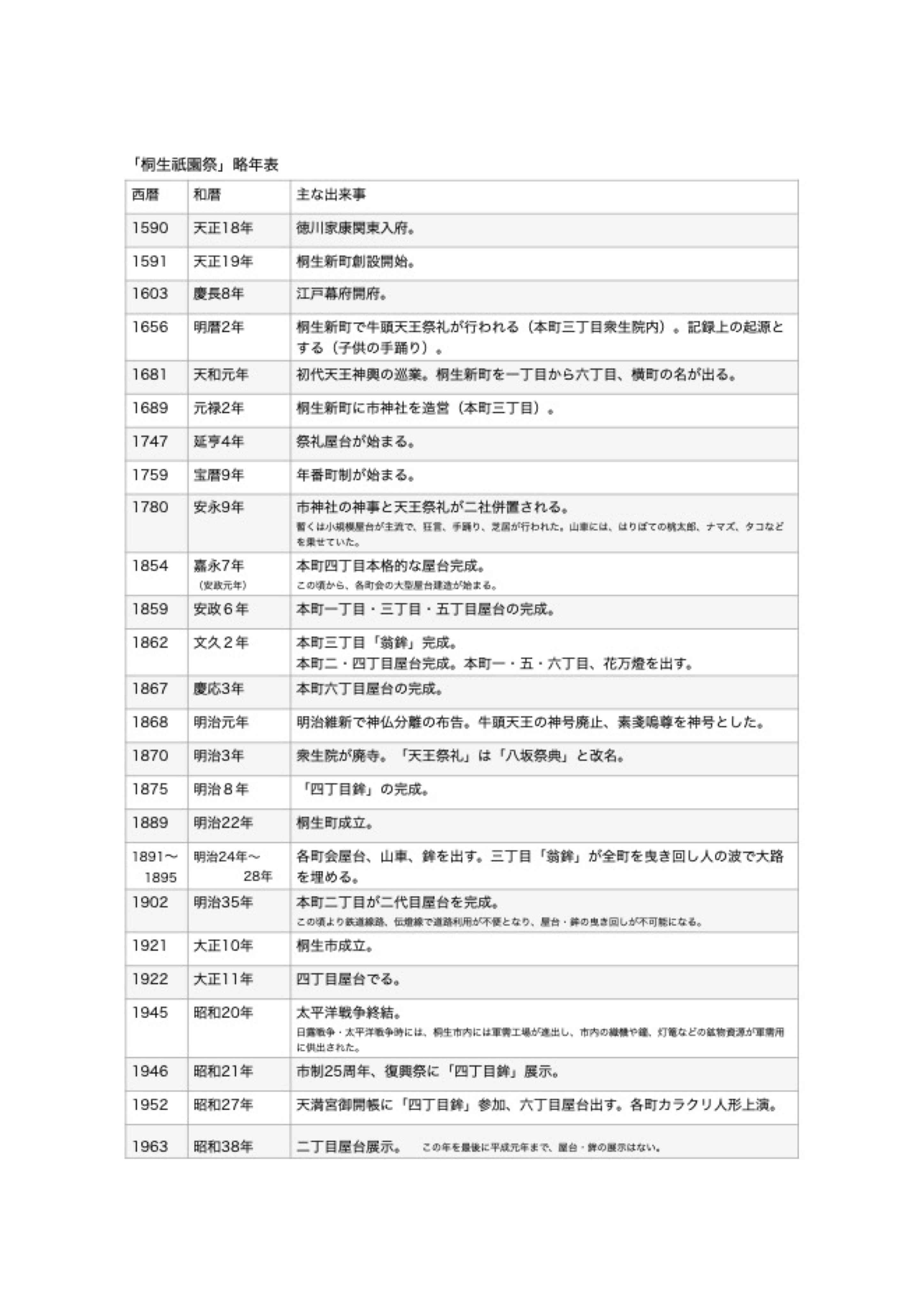 【図1】:「桐生祇園祭」略式年表1