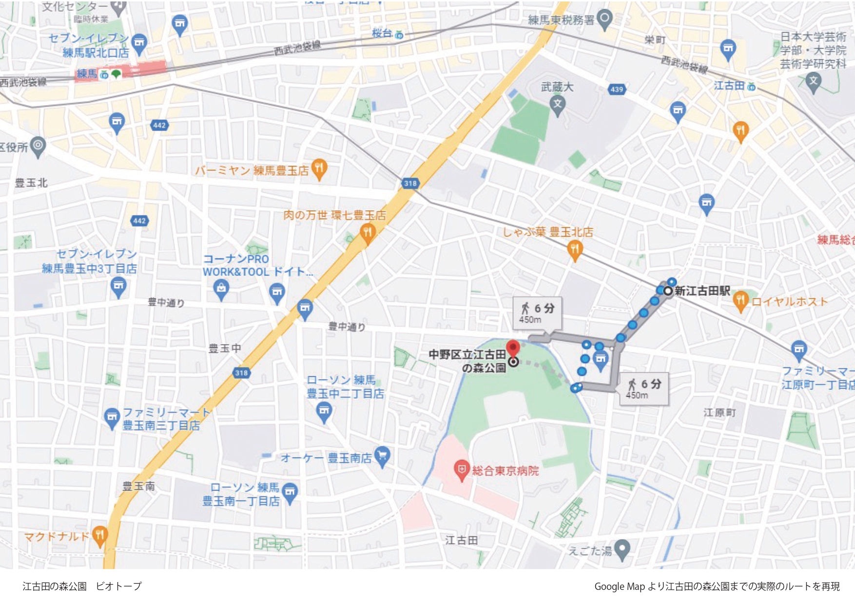 (Google Mapより江古田の森公園までの実際のルートを再現)