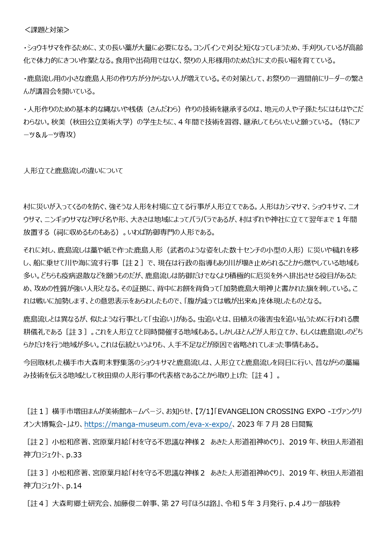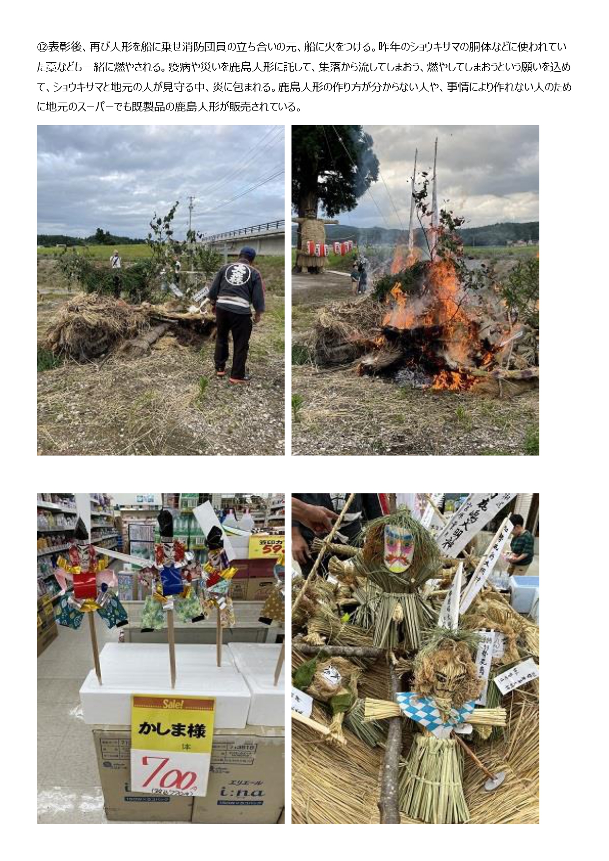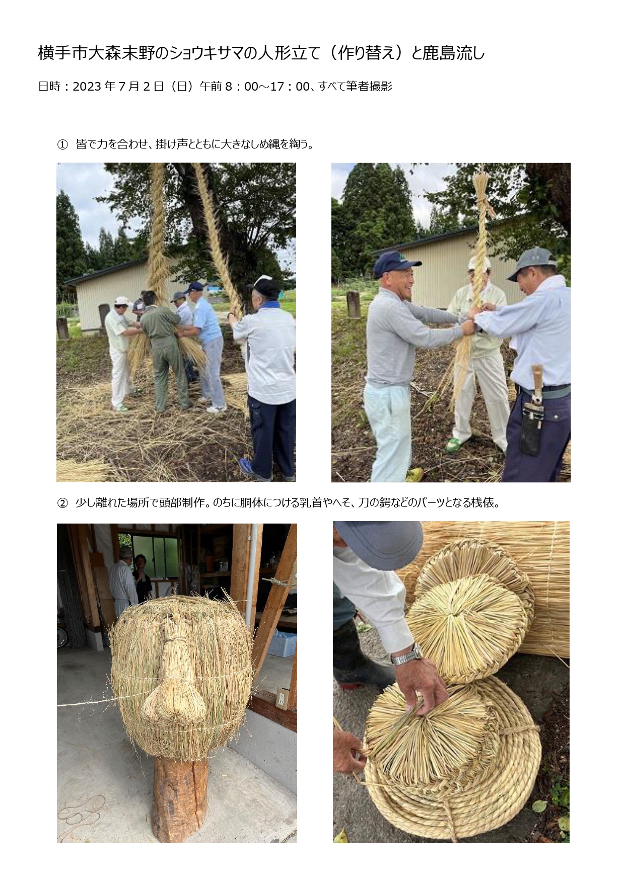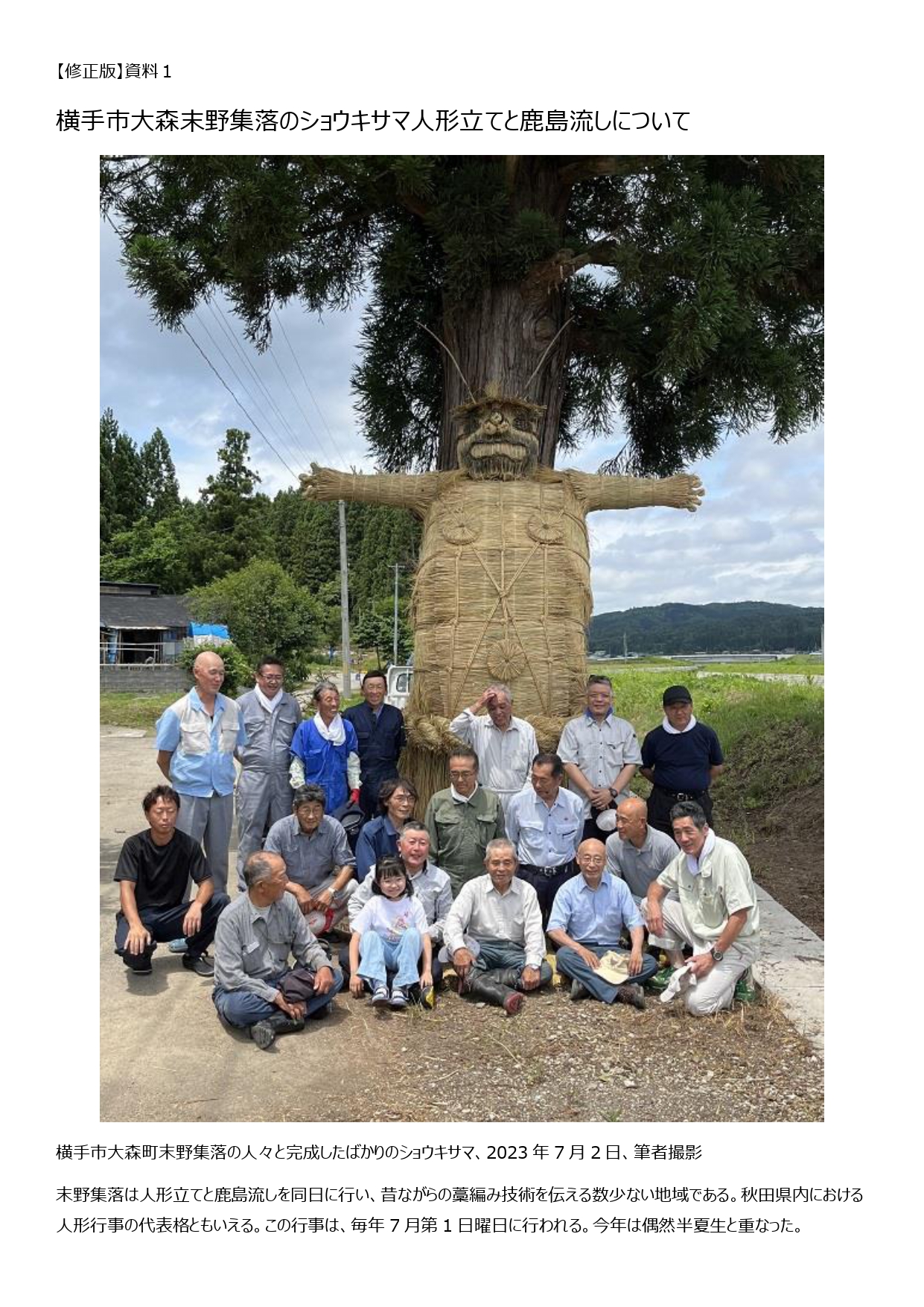 (資料1)別紙「資料1 横手市大森末野地区のショウキサマ人形立てと鹿島流しについて」(卒研資料1.pdf)参照のこと。