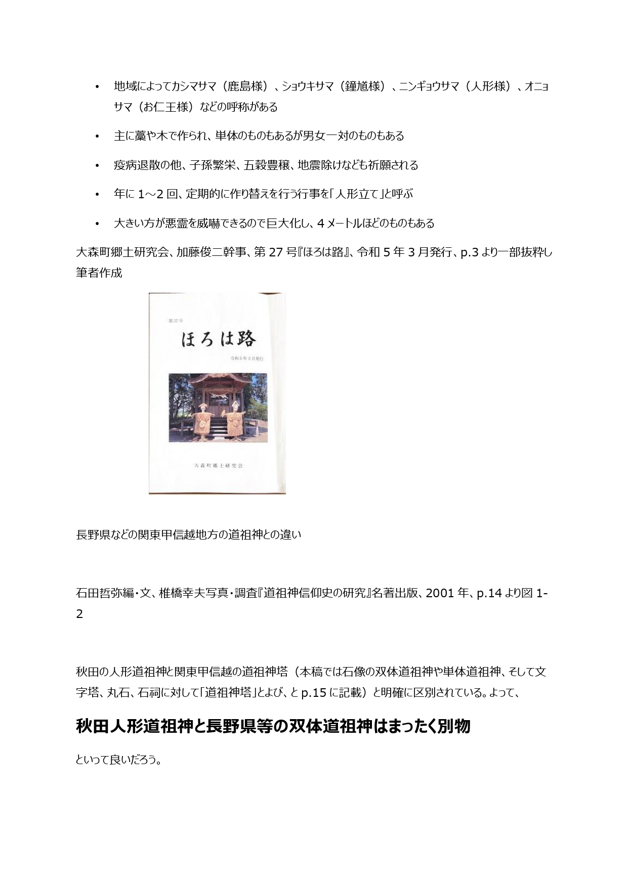 (資料2)別紙「資料2 秋田の人形道祖神について」(卒研資料2.pdf)参照のこと。
