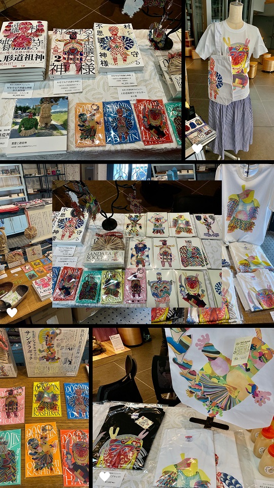 宮原氏のイラストがポップでかわいいと評判になり、キーホルダーやTシャツなどグッズ化して小松クラフトスペース内で販売している(写真2)。まずはデザインの力で人の興味関心を引き、認知度向上に貢献している。そして末野地区の人々が、揃いのショウキサマTシャツをユニフォームのように着ることで連帯感も生まれ、チームのようになっていく(写真1)。アートの力で人形道祖神が脚光を浴びることで、松田朋春のいう「物事にアーティストを介入させていく意味」[5]が生まれる。ANPの小松氏は、人形道祖神について「民俗学や郷土史ではなく、アートとしても発信したい」と発言している[6]。そして宮原氏の存在はイラストを描く専門家としてだけでなく、独特の感性で表現する「カワイイ」に集約された女性目線にあるという。民俗学界隈の権威ある男性が取材に行くと、どうしても堅い雰囲気になりがちだが、そういった専門性とは無縁の女性が入ることで場の雰囲気が和み、人形道祖神の新たな価値に気付かされるようである。