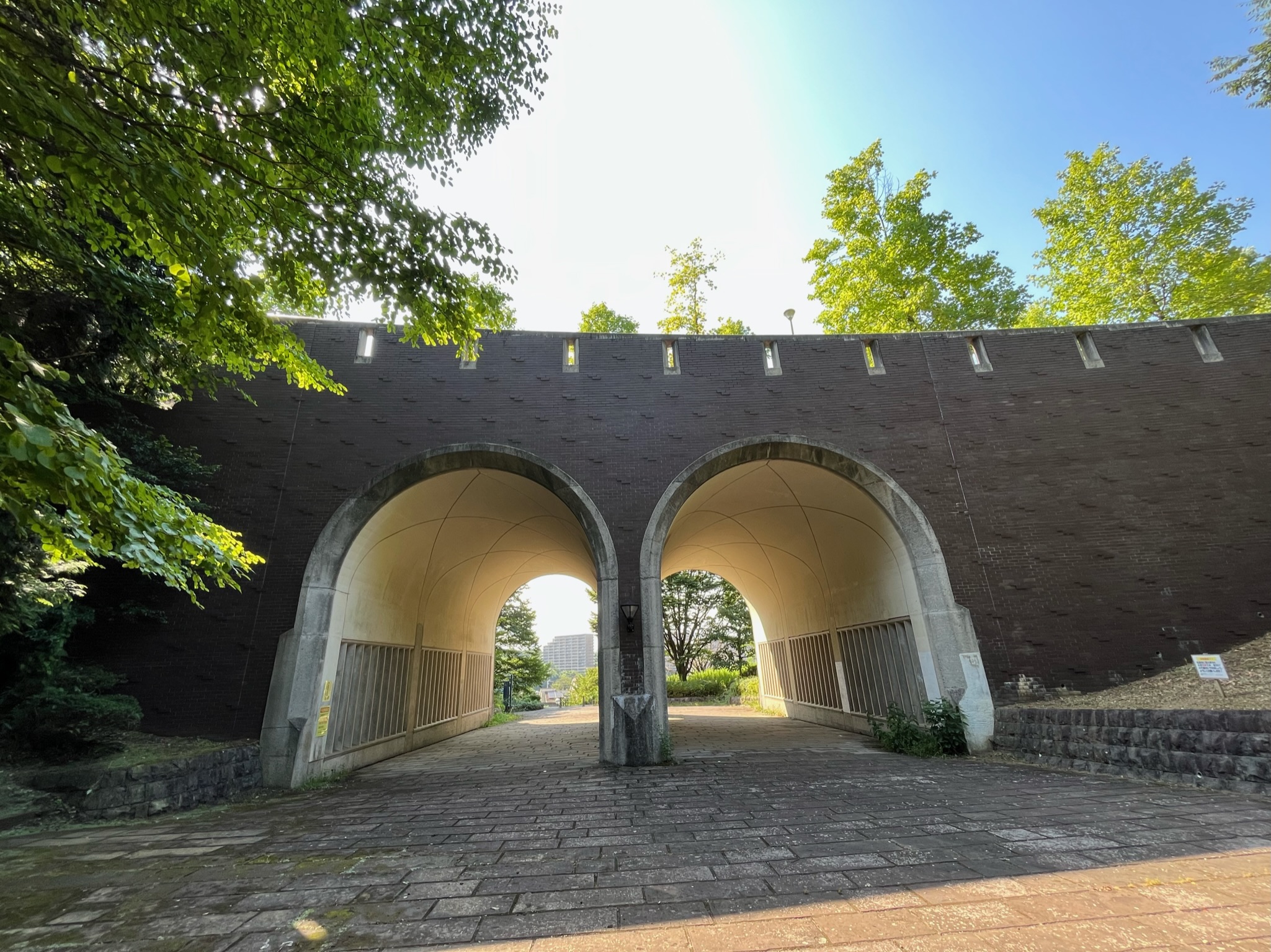 特徴: 蓮生寺公園の入口を跨ぐ位置にある道路橋。橋下のスペースは、公園となっており近隣の子供たちの遊びとなっている。「緑に映える明るい橋」、「子供に親しみやすい橋」、「ディテールを重視したテクスチャー豊かな橋」を設計方針としてる。アーチ天井が美しいアーチ橋でる。 -