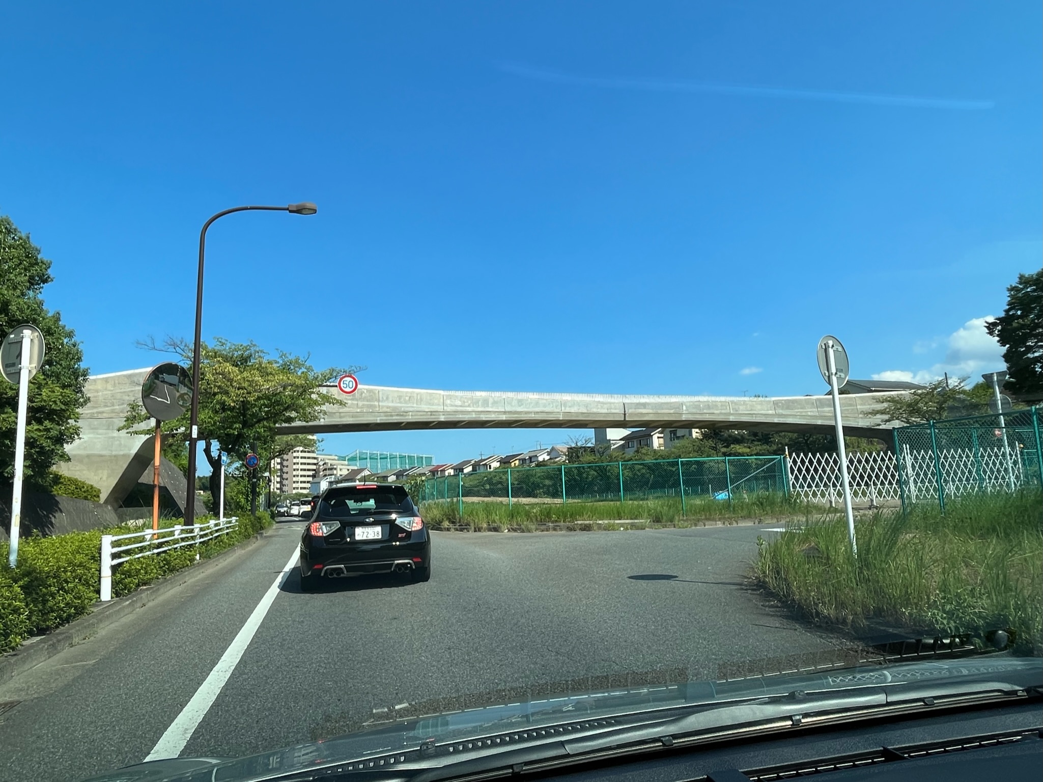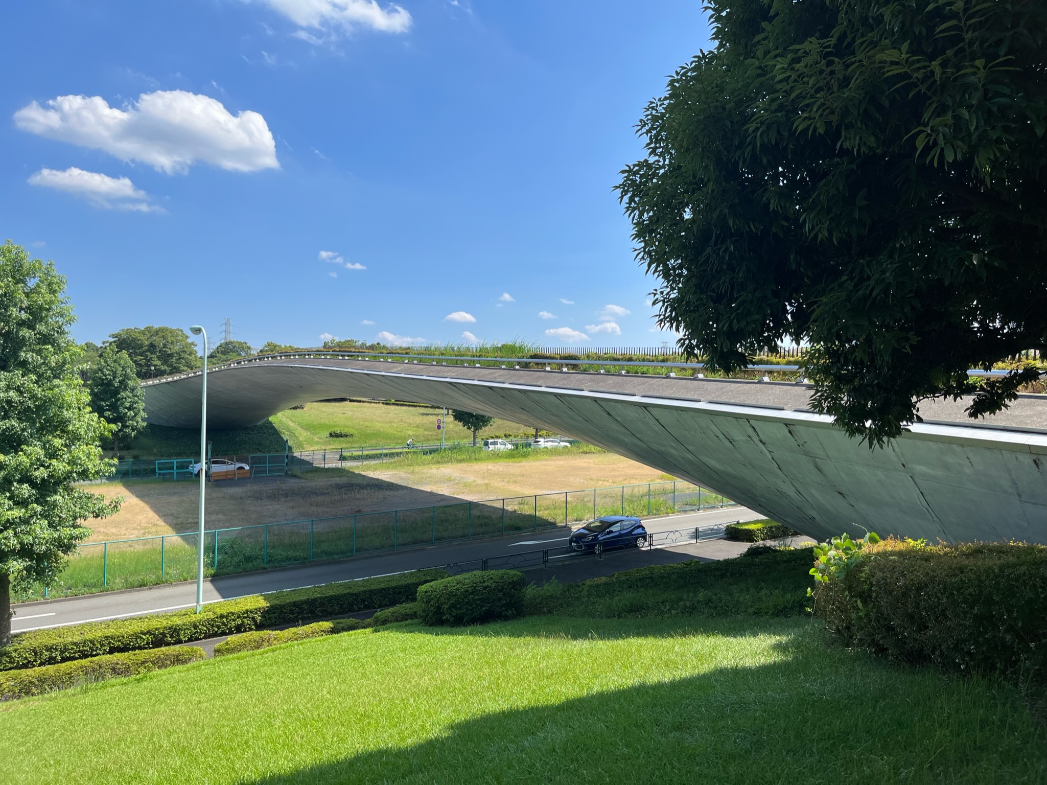 特徴:尾根幹線のランドマークとなる橋。独立住宅地に架橋されるため、住民のプライバシーに配慮されている。美しく軽快なデザインが追求され、優美な二次曲線の壁高欄となっている。橋詰広場には、円形階段・植栽・ベンチが施され、住民の憩いの場ともなっている。 -