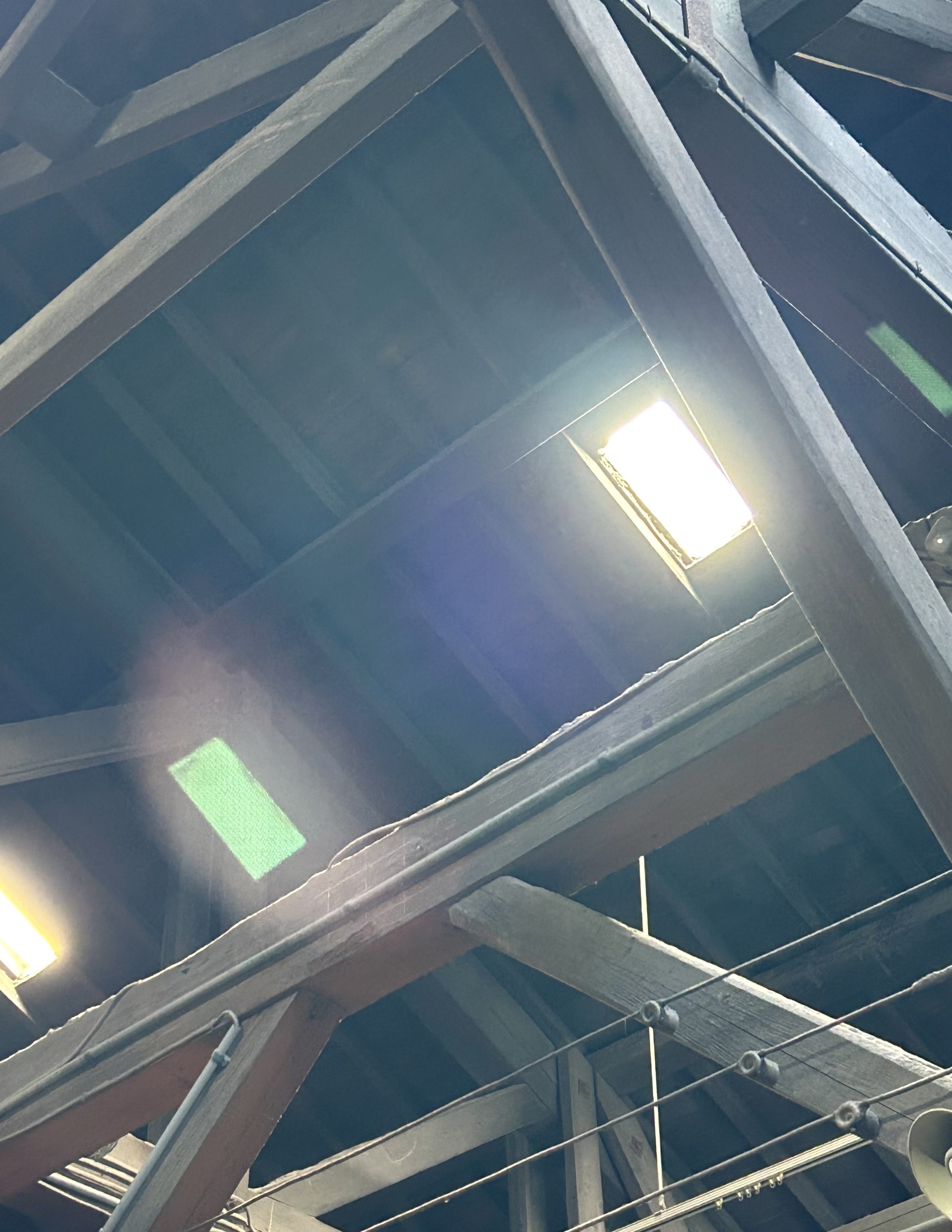 • [資料1]佐竹ガラス工場の天井より差し込む光(2023年7月11日 筆者撮影)
