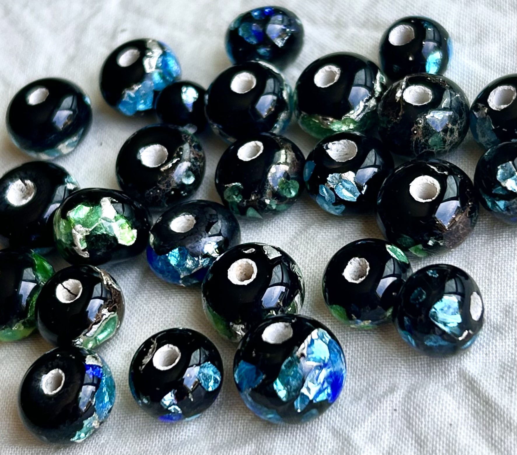 その作り方は、離型剤を巻きつけた金属の棒に不透明な黒いガラスを玉状にしたところを、銀箔で巻き、その上に青を中心とした色ガラスを散りばめて、ホタルの様な落ち着いた光をとんぼ玉に閉じ込めた表現である。元々は、和泉市でとんぼ玉の製作をして居た職人の一人が編み出した50年以上前の技法が、地域に於いて知られるようになったものであった。その場に拠点を構える職人の中では、当たり前の様に知られた玉を彩る技術の一つで有った。その技法の工程と仕上がりの魅力を改めて整理して、後世に伝えるべき技法の一つとしてブランド化する事に成功したものである。