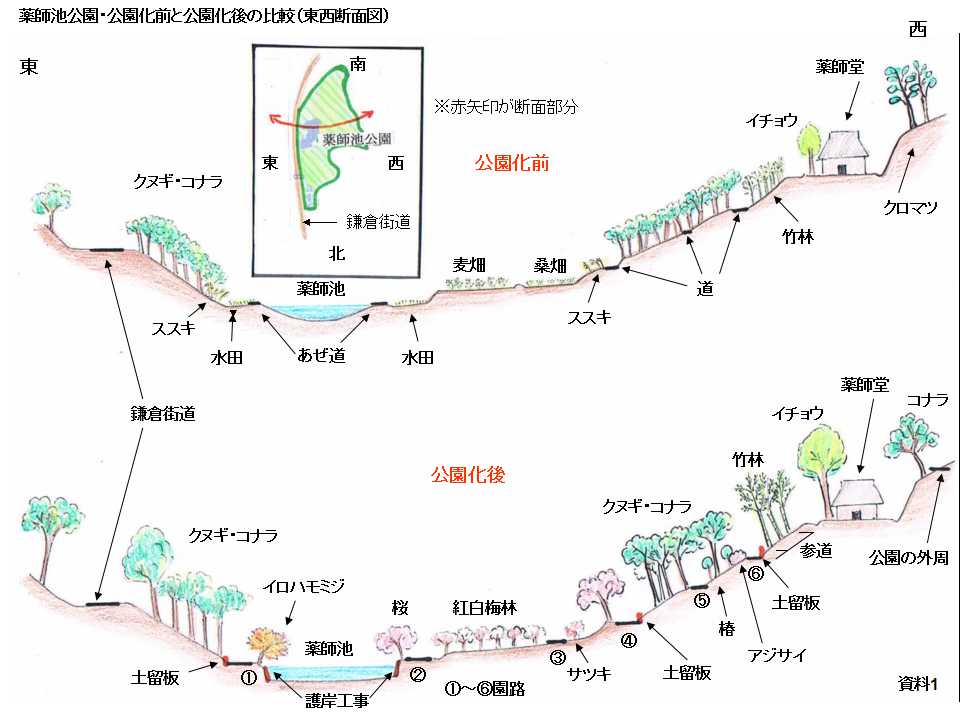 しかし、1961年に薬師池周辺が七国山風致地区と都市計画公園に決まり、薬師池周辺は自然保護と都市公園としての整備が進められていくことになったのである。